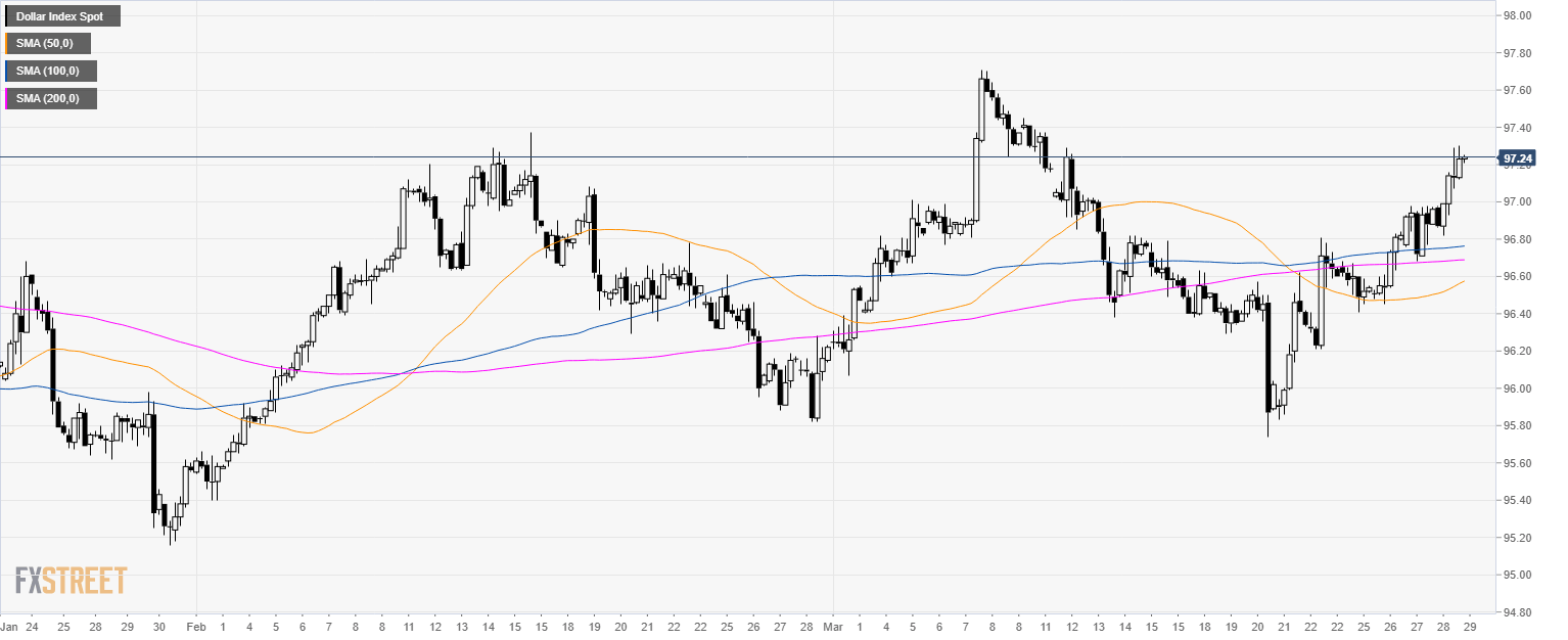 - A break above 97.60 resistance should lead to 97.50 and 97.70 if bulls have enough fuel.