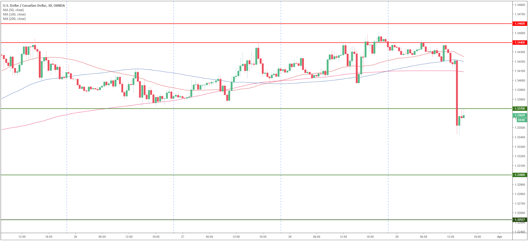 USD/CAD 30-minute chart