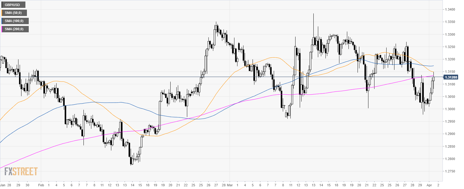 - GBP/USD is challenging the 1.3140 level and the 50 and 200 SMAs.