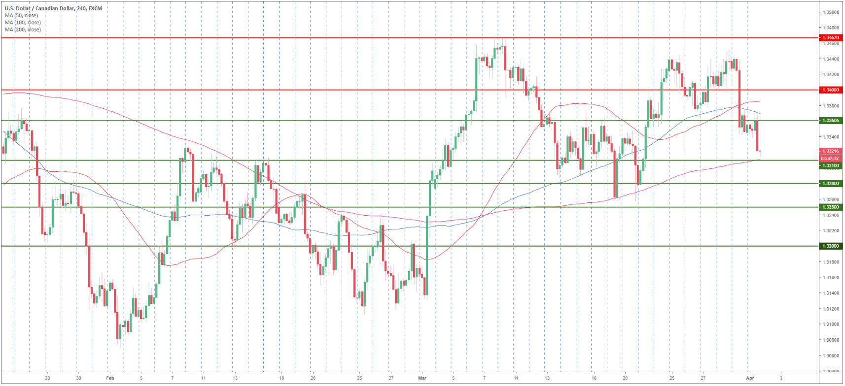 - Bears are currently in the driver’s seat. The next supports to the downside are seen near 1.3310 and 1.3280 level.