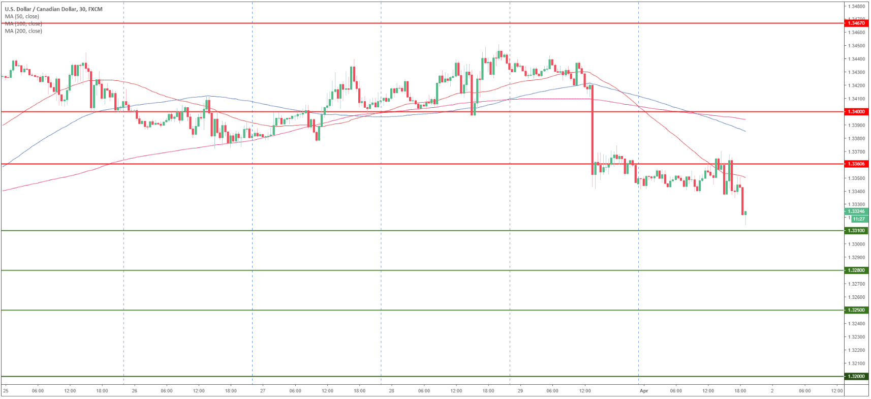 USD/CAD 30-minute chart