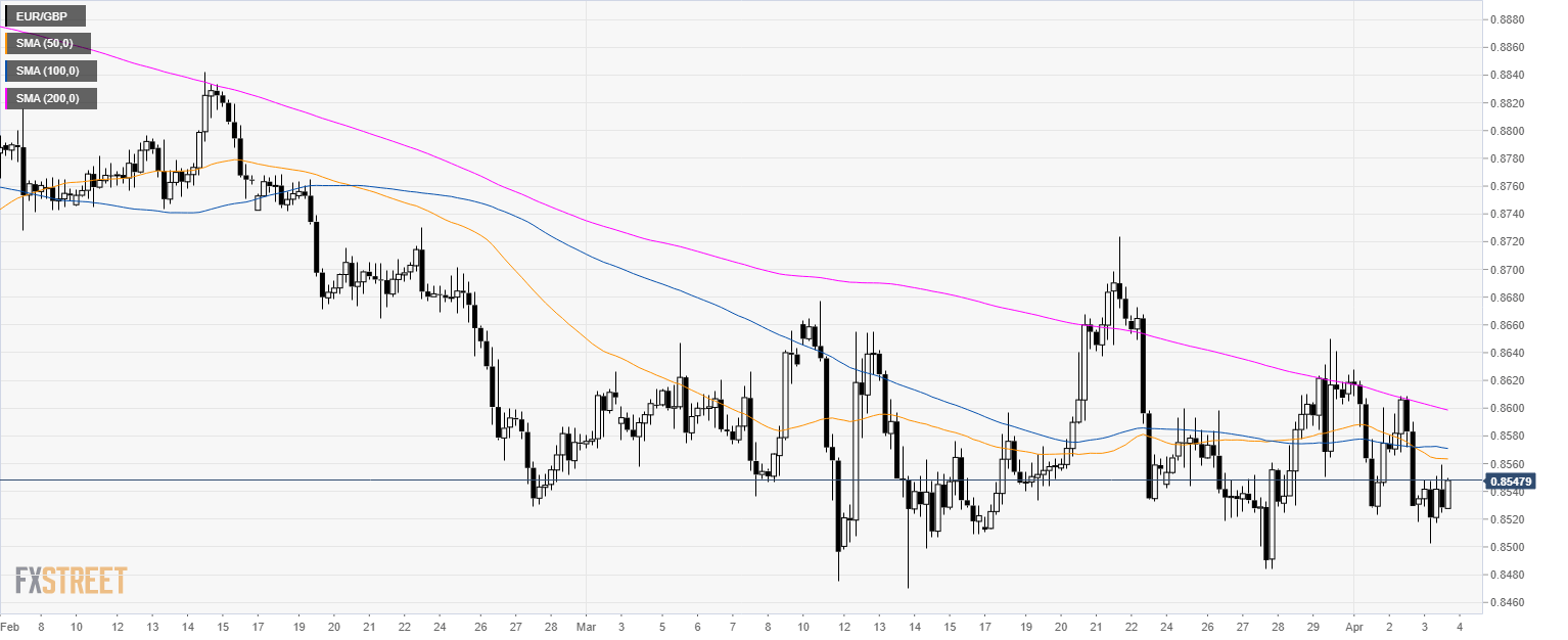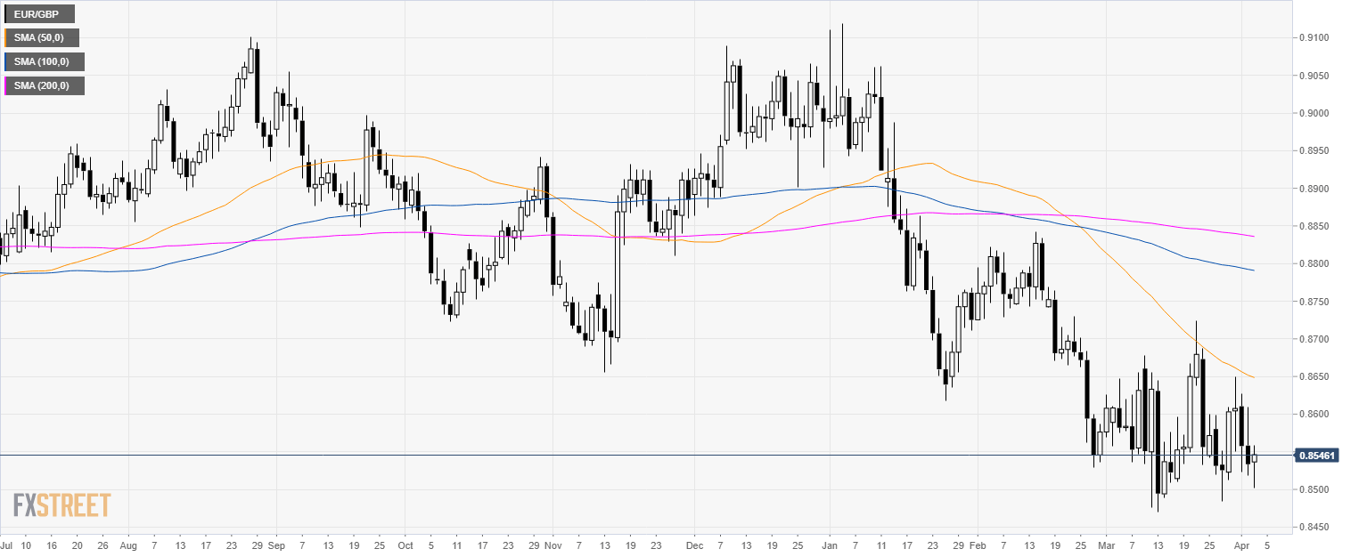 • EUR/GBP is trading below its 100 and 200 SMAs suggesting a bearish bias in the short-term.