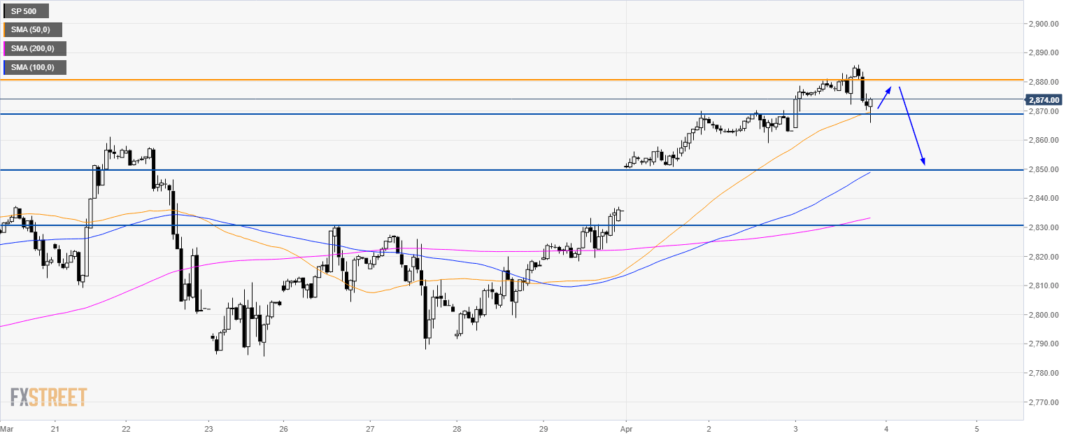 - Bulls will likely bring the market to 2,880.00 resistance before a potential drop to 2,850.00