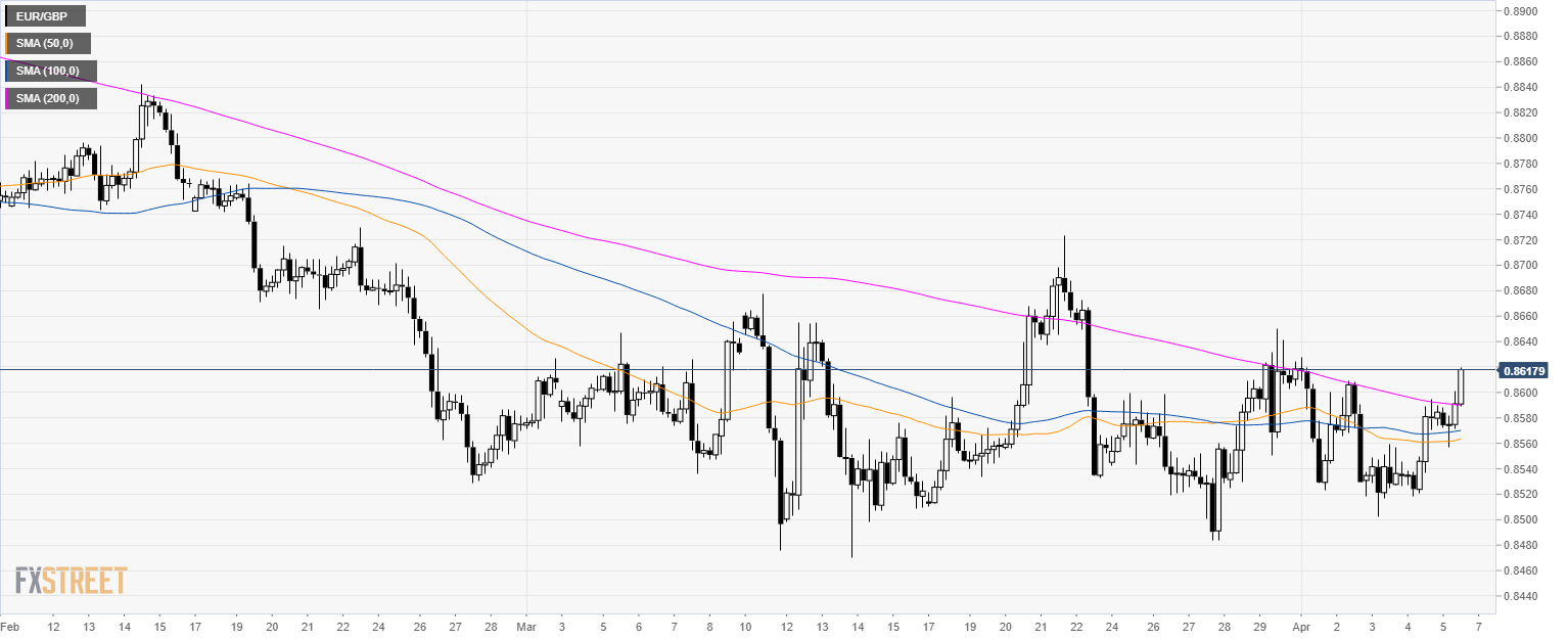 - EUR/GBP broke above the 200 SMA suggesting bullish momentum in the medium-term.