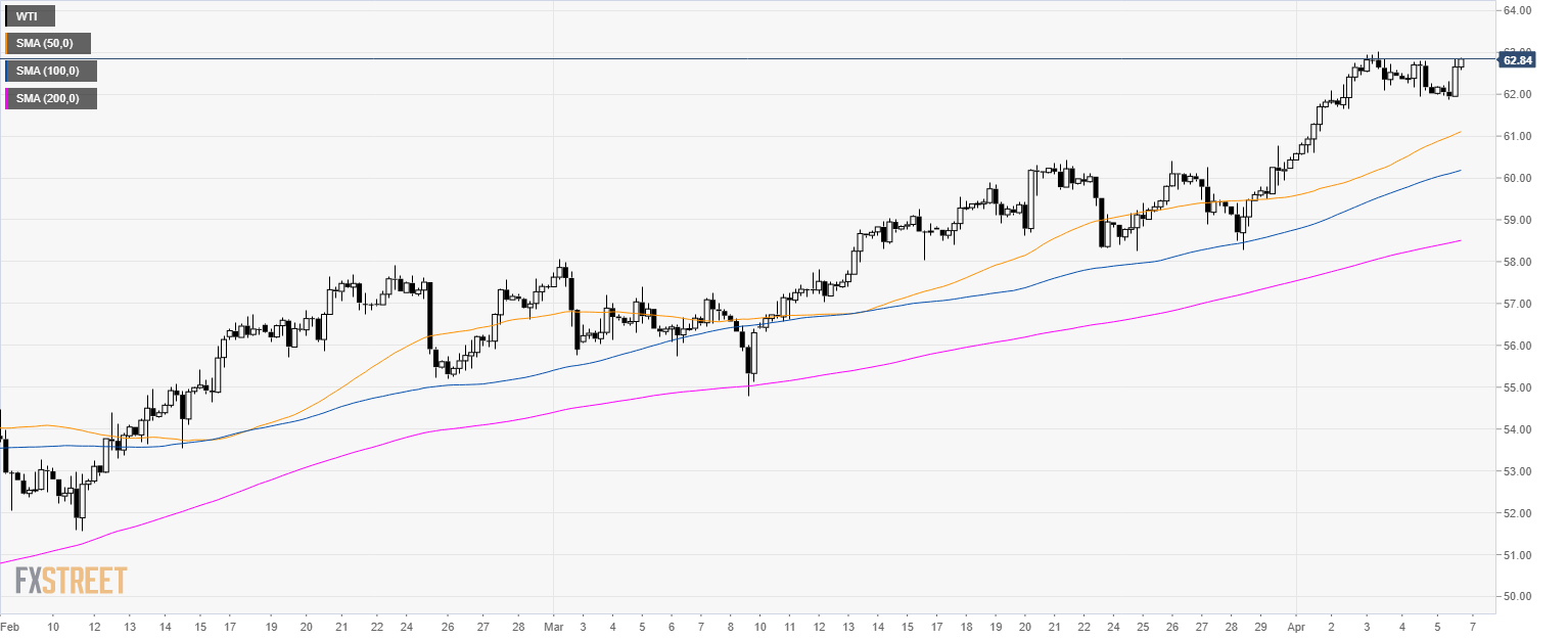 - WTI is trading above its main simple moving averages (SMA) suggesting a bullish bias.