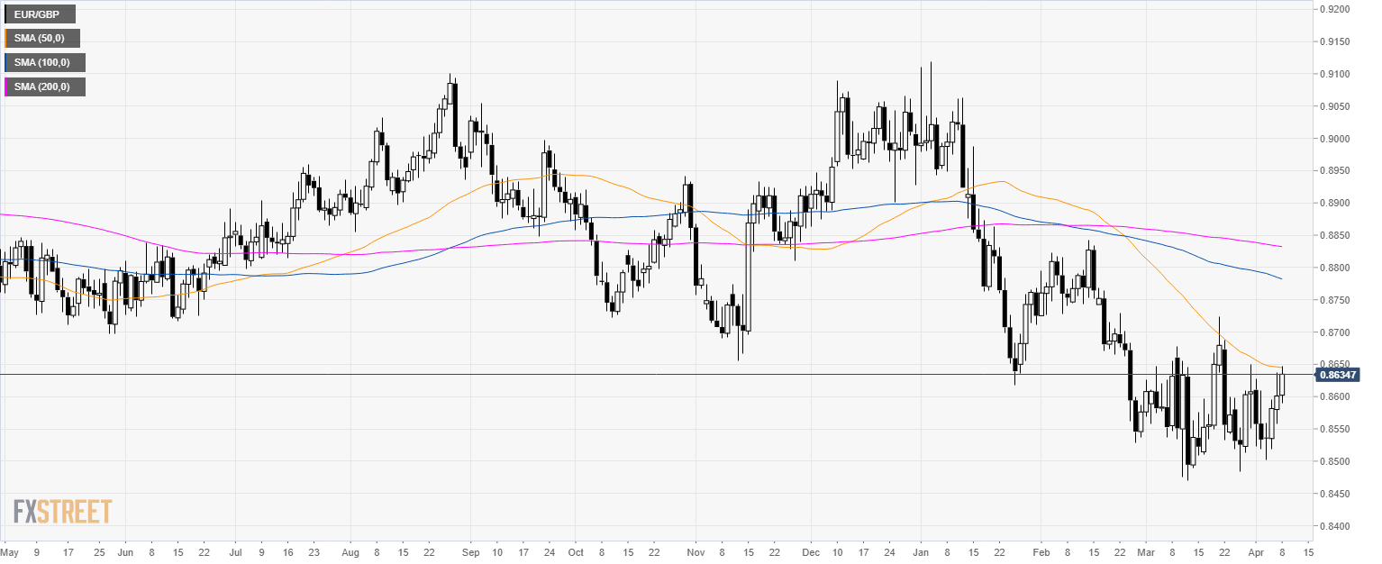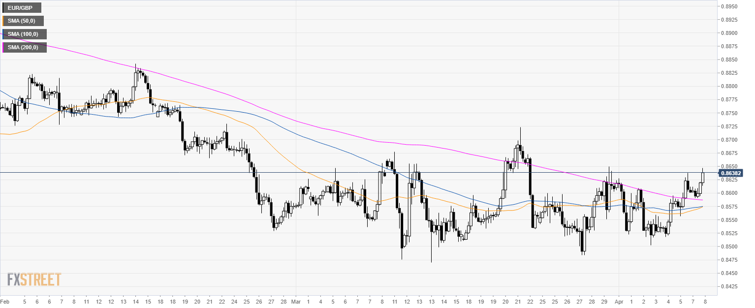 - EUR/GBP is trading above its main SMAs suggesting a bullish bias in the short-term.
