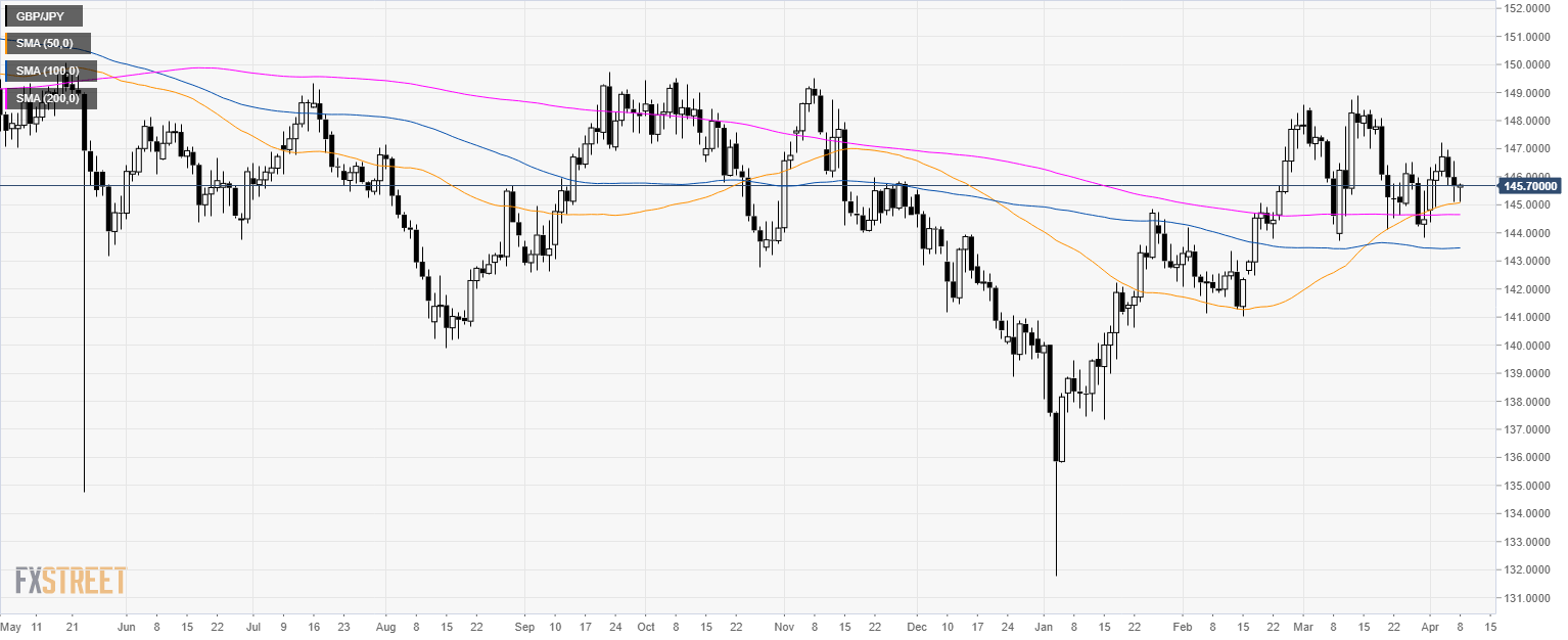 - GBP/JPY is consolidating above its 200-day simple moving averages (SMA).