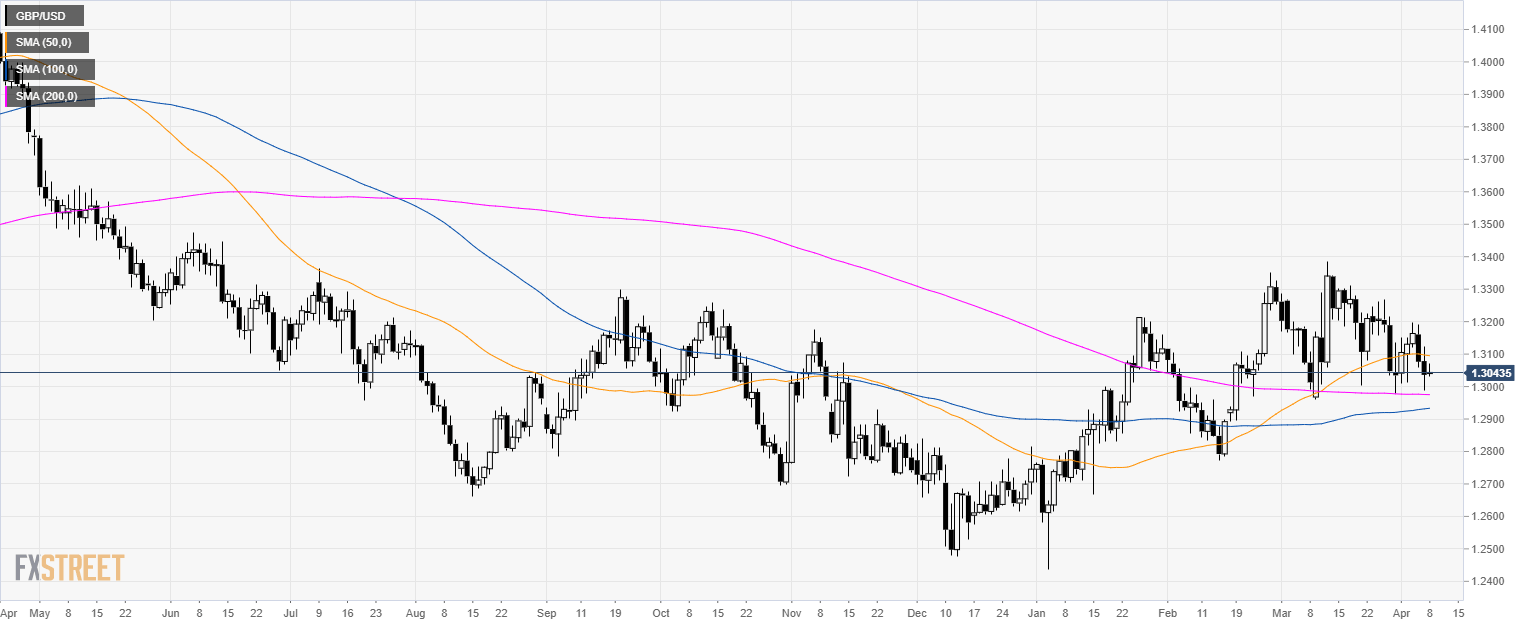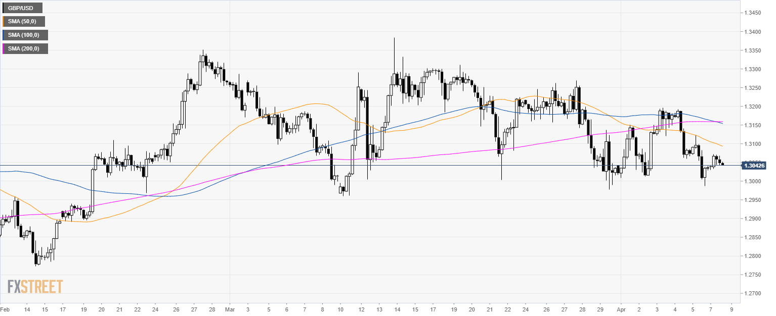 - GBP/USD rejected 1.3080 resistance and the 100 SMA.