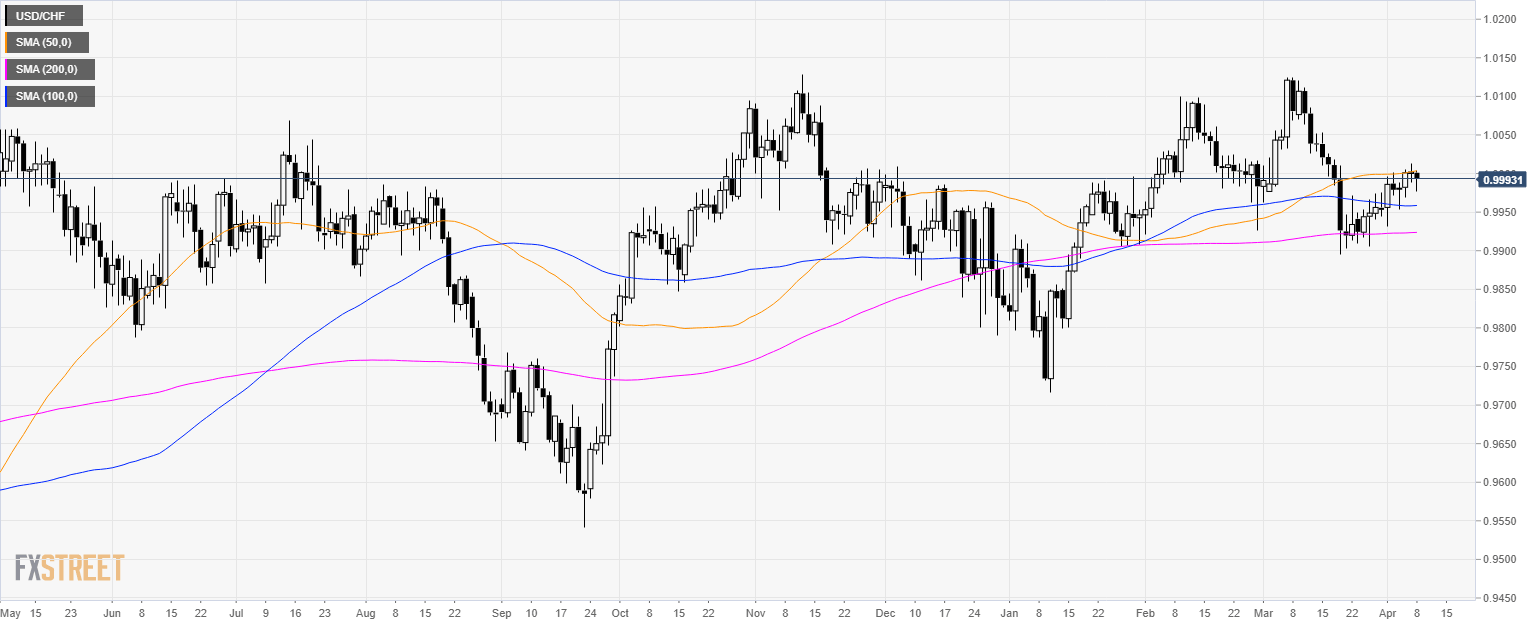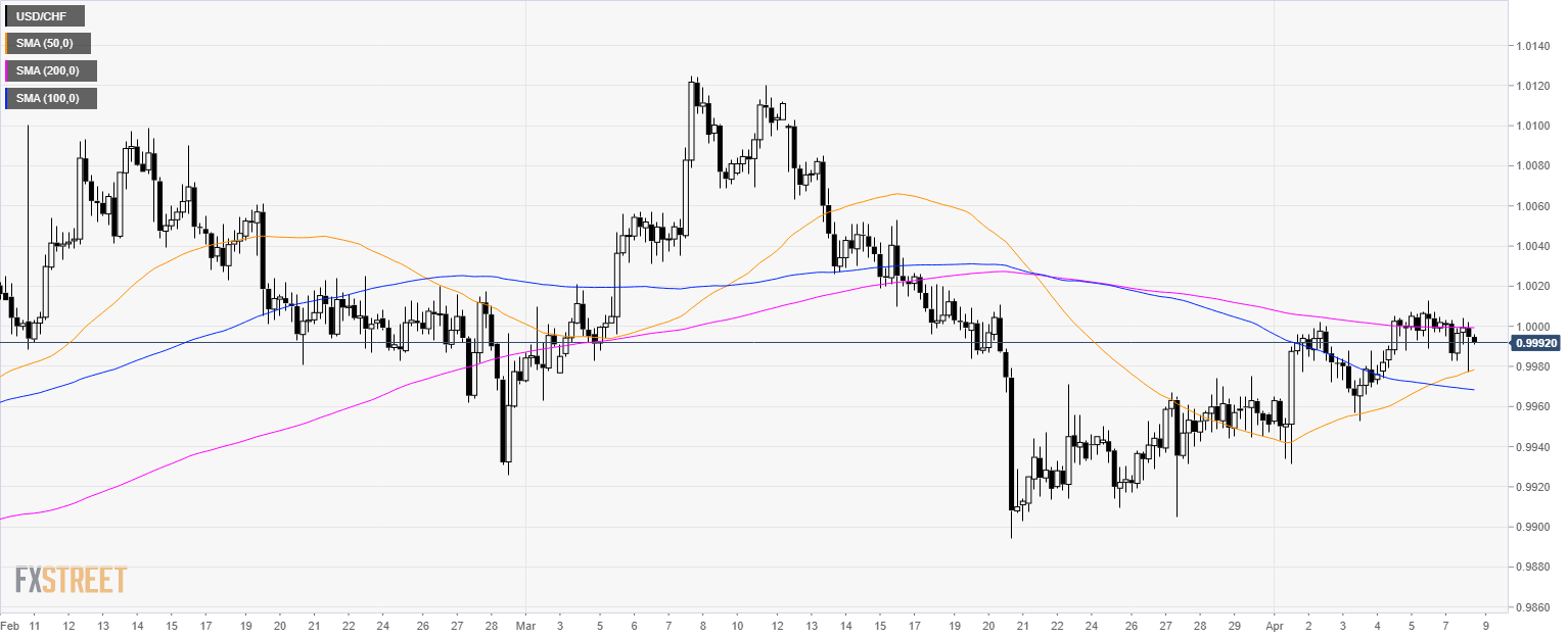 - USD/CHF is currently capped by the 50 SMA near the parity level.