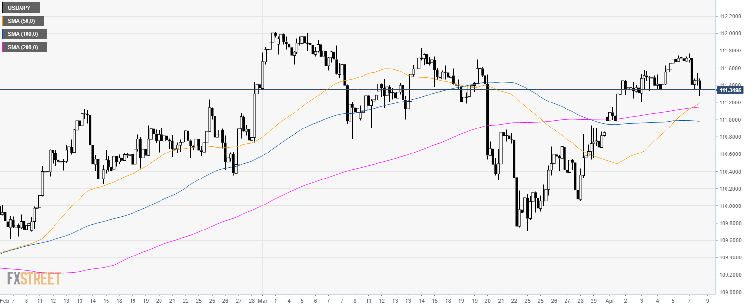 - USD/JPY is trading below its main SMA suggesting bearish momentum in the short-term.