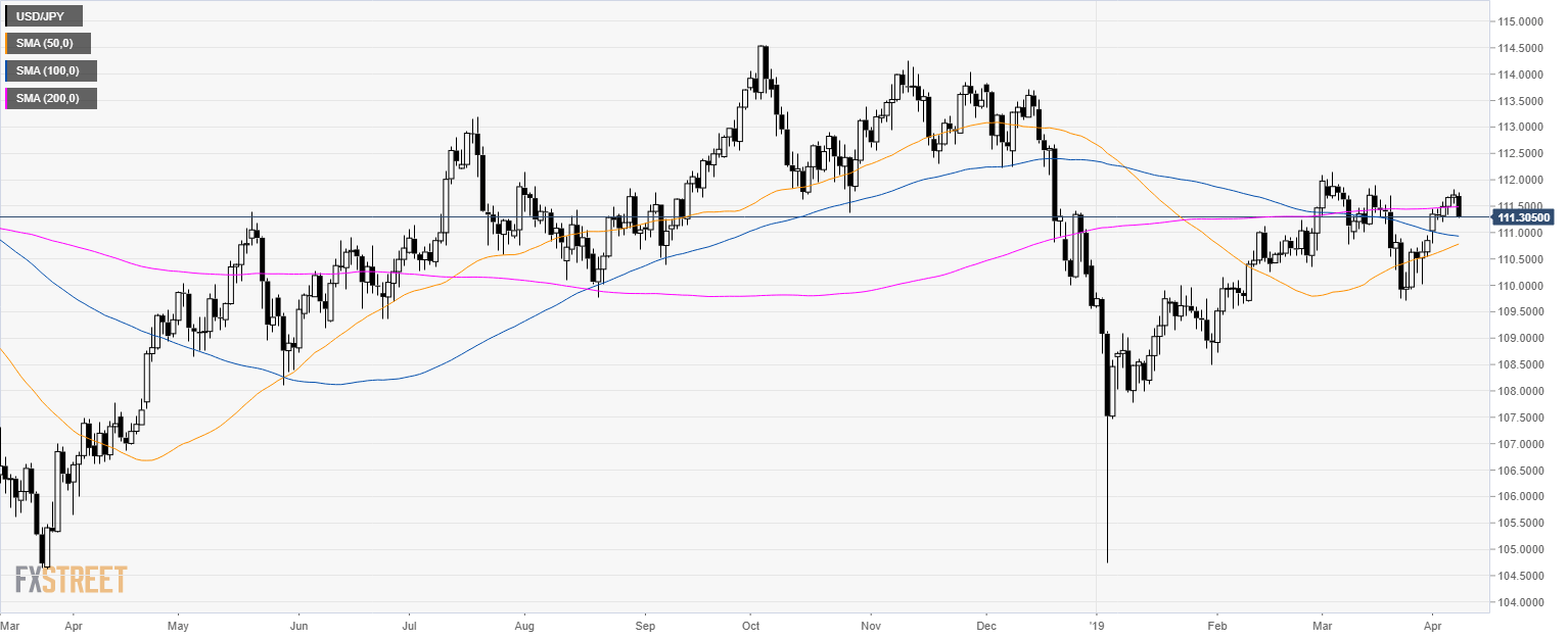 - USD/JPY is consolidating below its 200-day simple moving average (SMA).