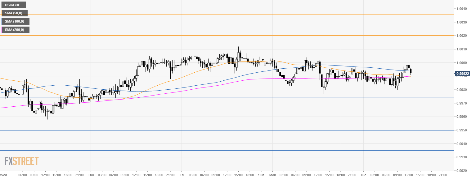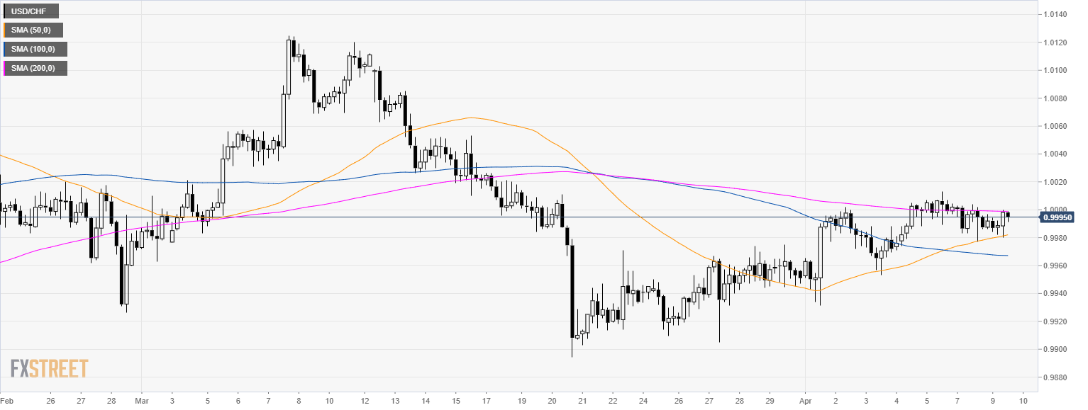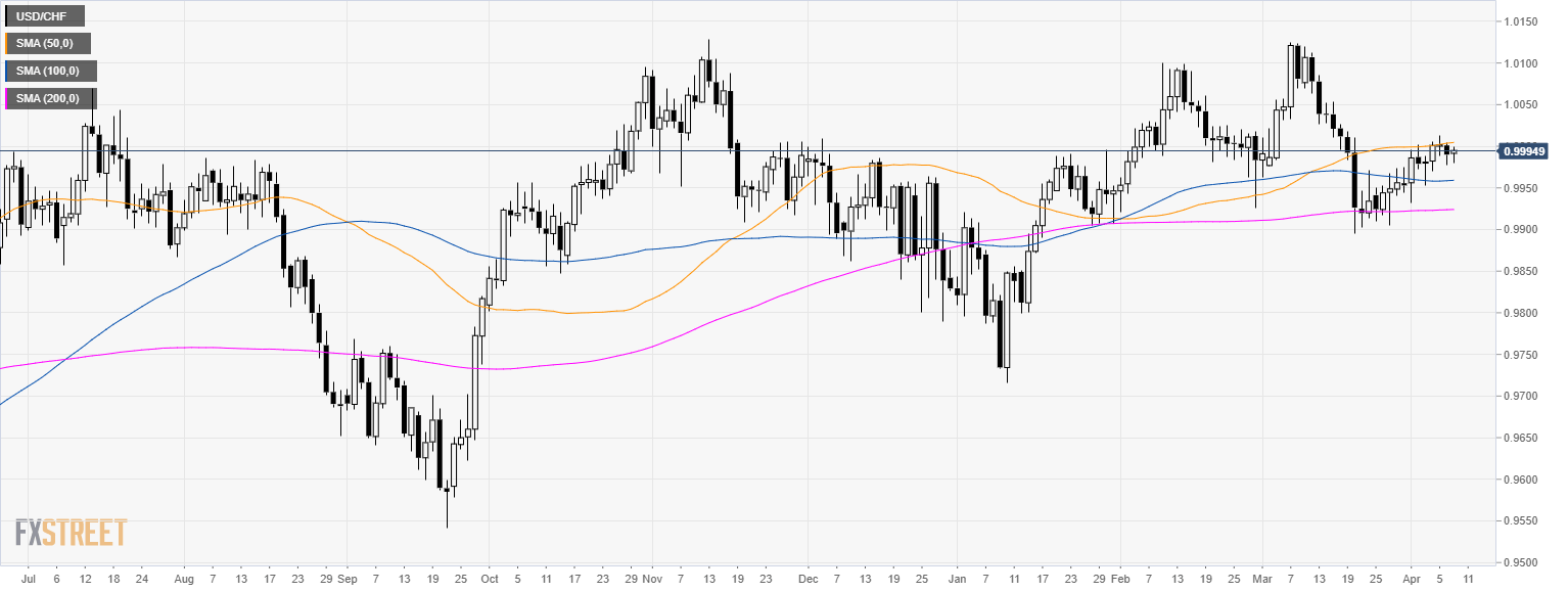 - USD/CHF is capped by the 50 SMA near the parity level.