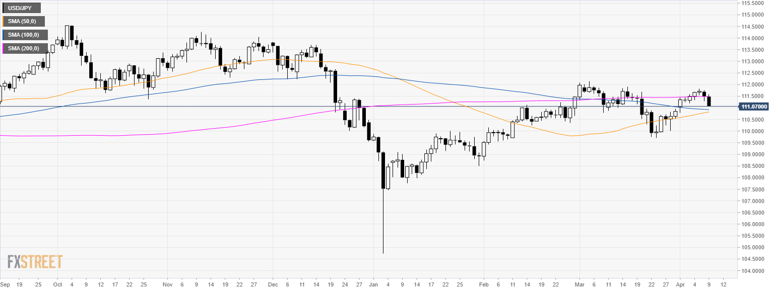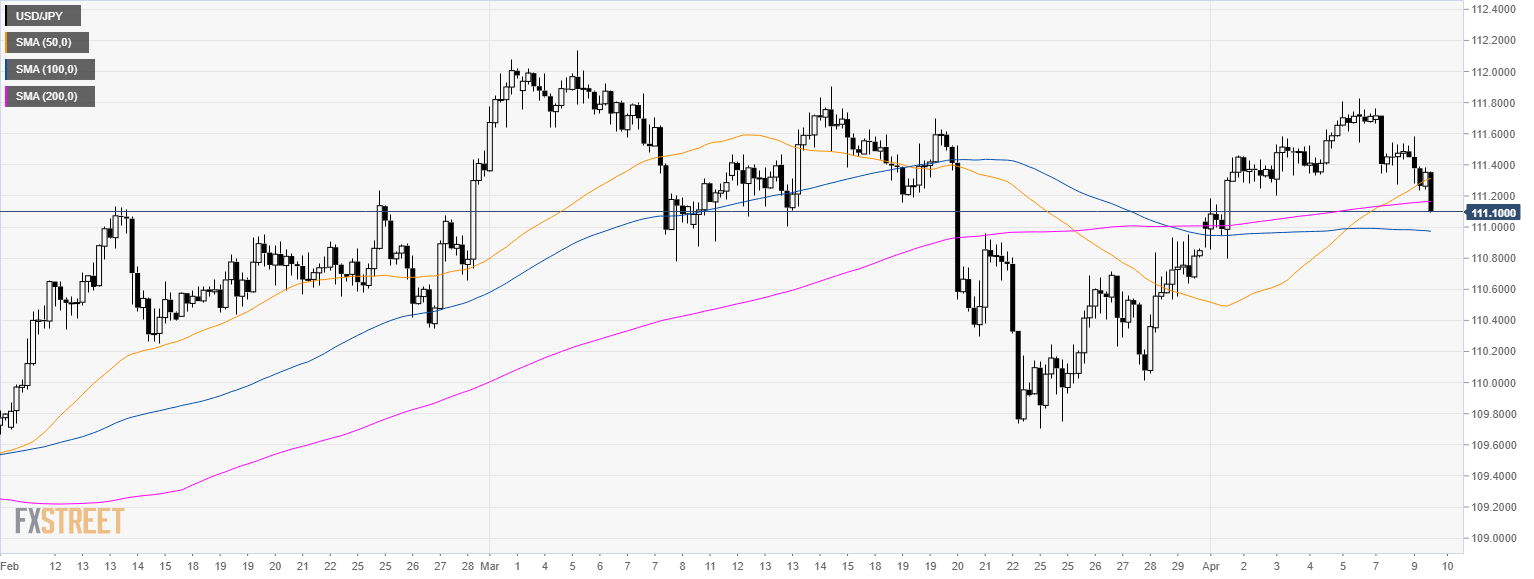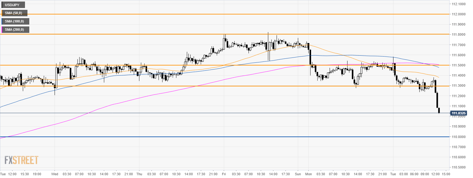 • USD/JPY broke below the 111.30 support as the market is trading below its main SMAs.