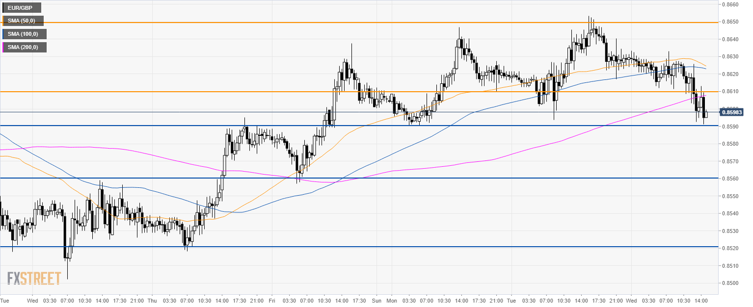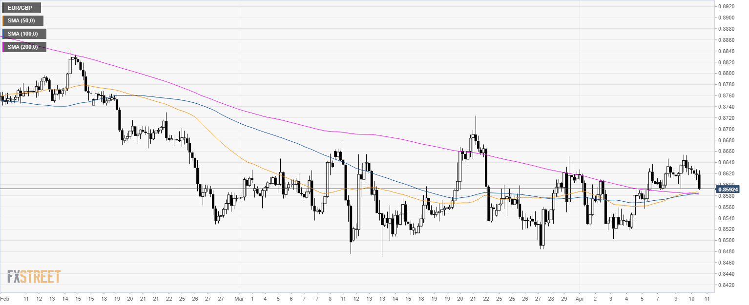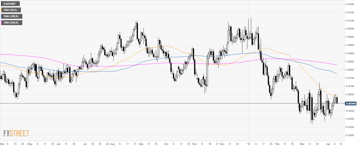 - EUR/GBP is rejecting the 0.8650 level and the 50 SMA.
