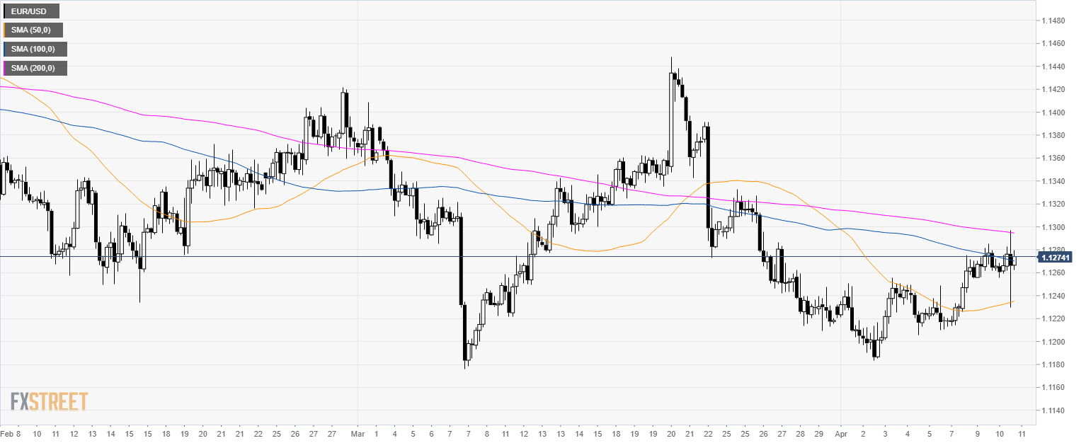 - EUR/USD is trading just below the 1.1300 resistance.