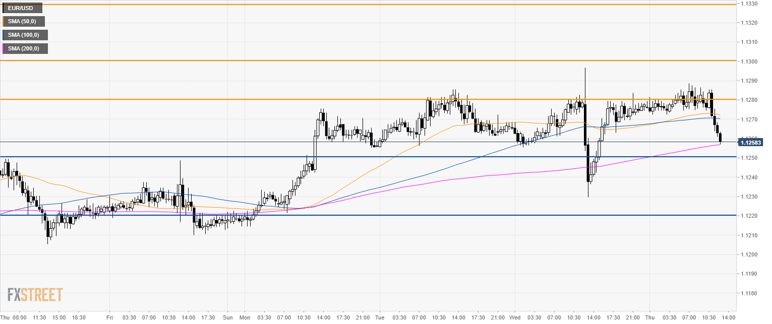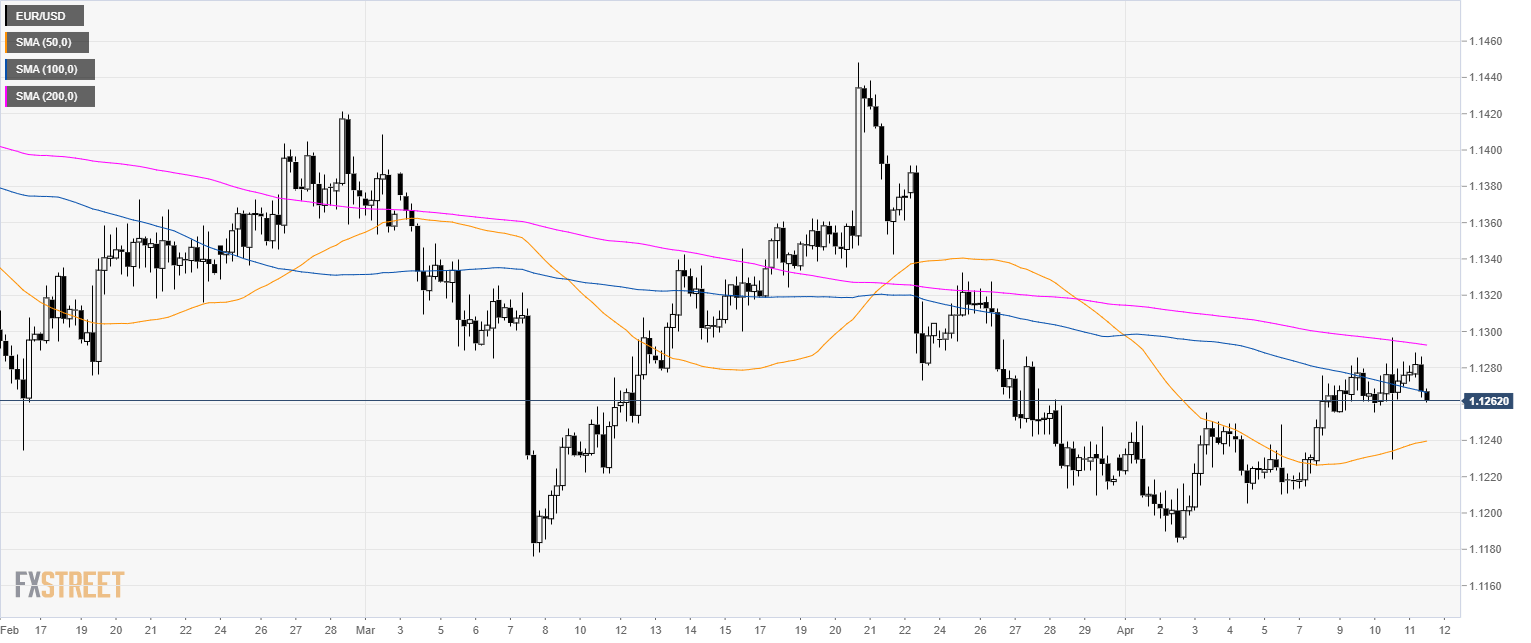 • EUR/USD rejected 1.1280 resistance as it is trading below the 50 and 100 SMAs.