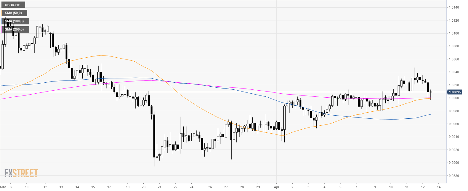- USD/CHF found some support at the parity level and the 50 and 200 SMA.