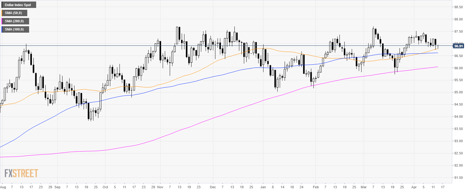 - DXY found some support at the 50 SMA just below 97.00 the figure.