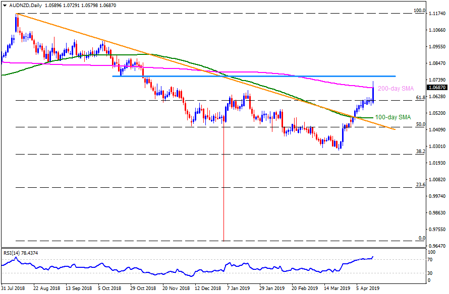AUD/NZD Technical Analysis: Sustained break of 200-day SMA can escalate recent rally towards 1.0755/65 resistance area