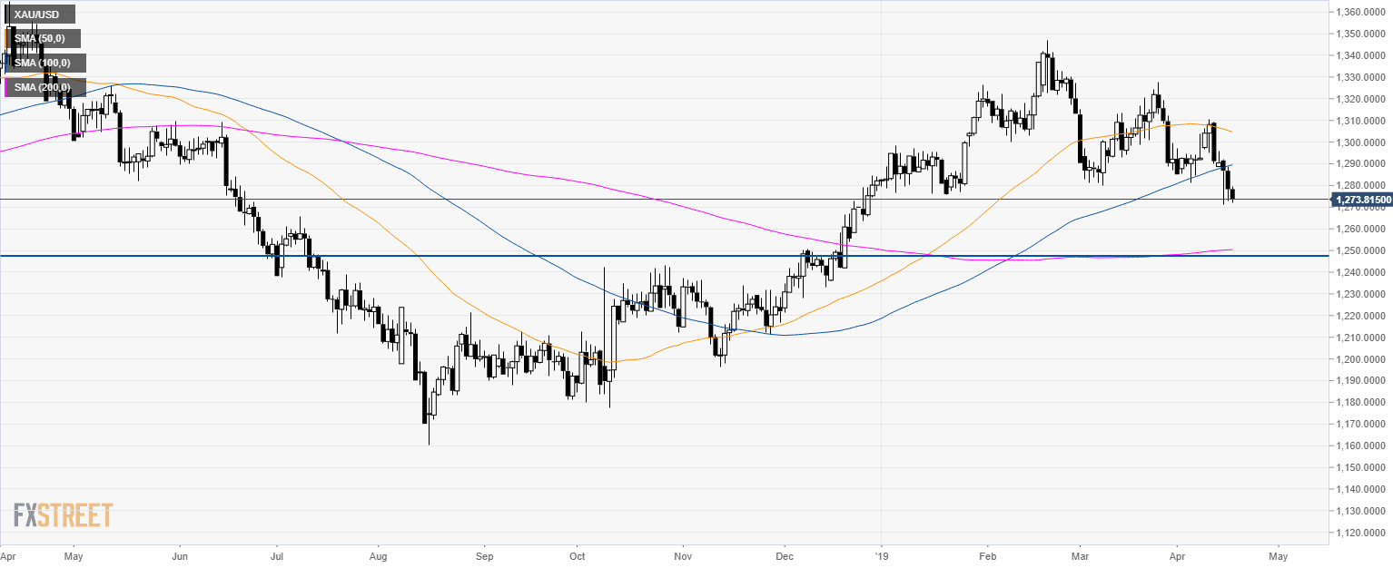 - Gold broke below 1,280.00 and the 100 and 200 simple moving averages (SMAs) suggesting a correction down.