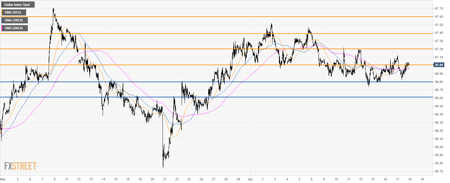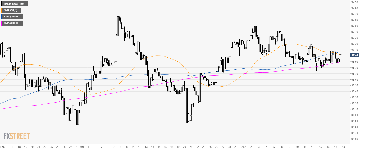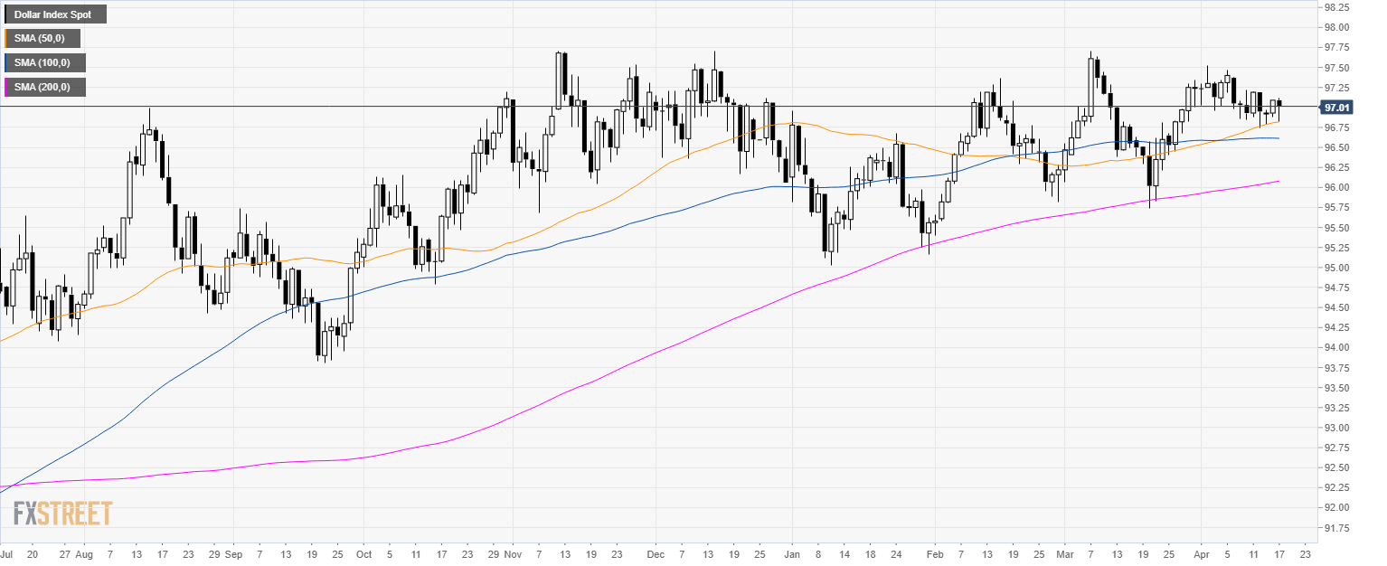 • DXY is trading near 97.00 and just above the 50 SMA.
