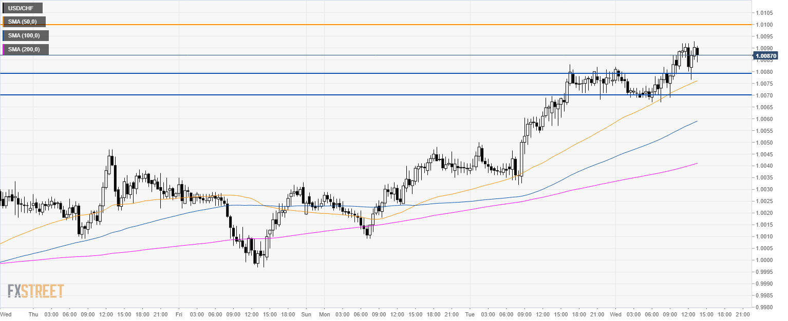 - USD/CHF is trading above the main SMAs leaving the bull trend intact in the short-term.