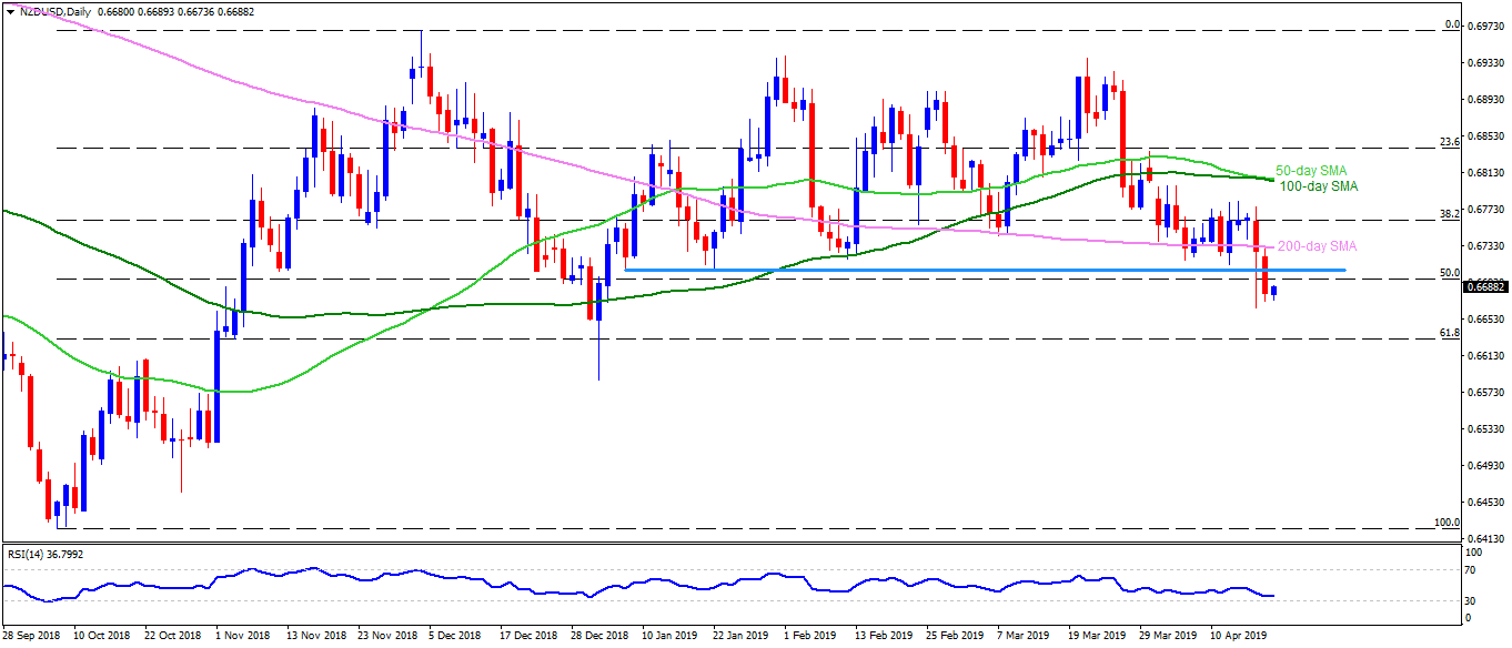 NZD/USD Technical Analysis: Sellers aim for 61.8% Fibo on the break of 0.6700