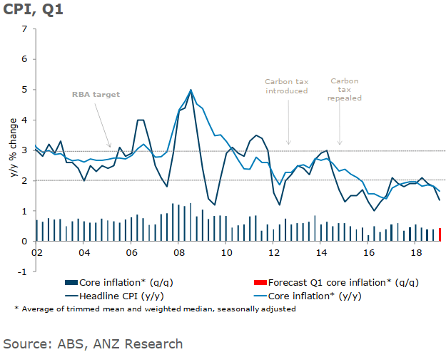 Our forecast for core inflation is broadly consistent with what the RBA published in its February Statement on Monetary Policy. If core inflation for the quarter comes in at 0.3% or below, a rate cut in May is a real possibility, in our view.”