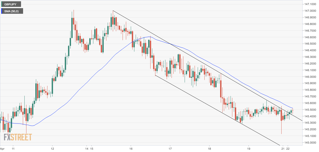- GBP/JPY is currently chipping away the descending 50-hour moving average (HMA) hurdle of 145.51, having witnessed a bearish (falling) channel breakout earlier today.