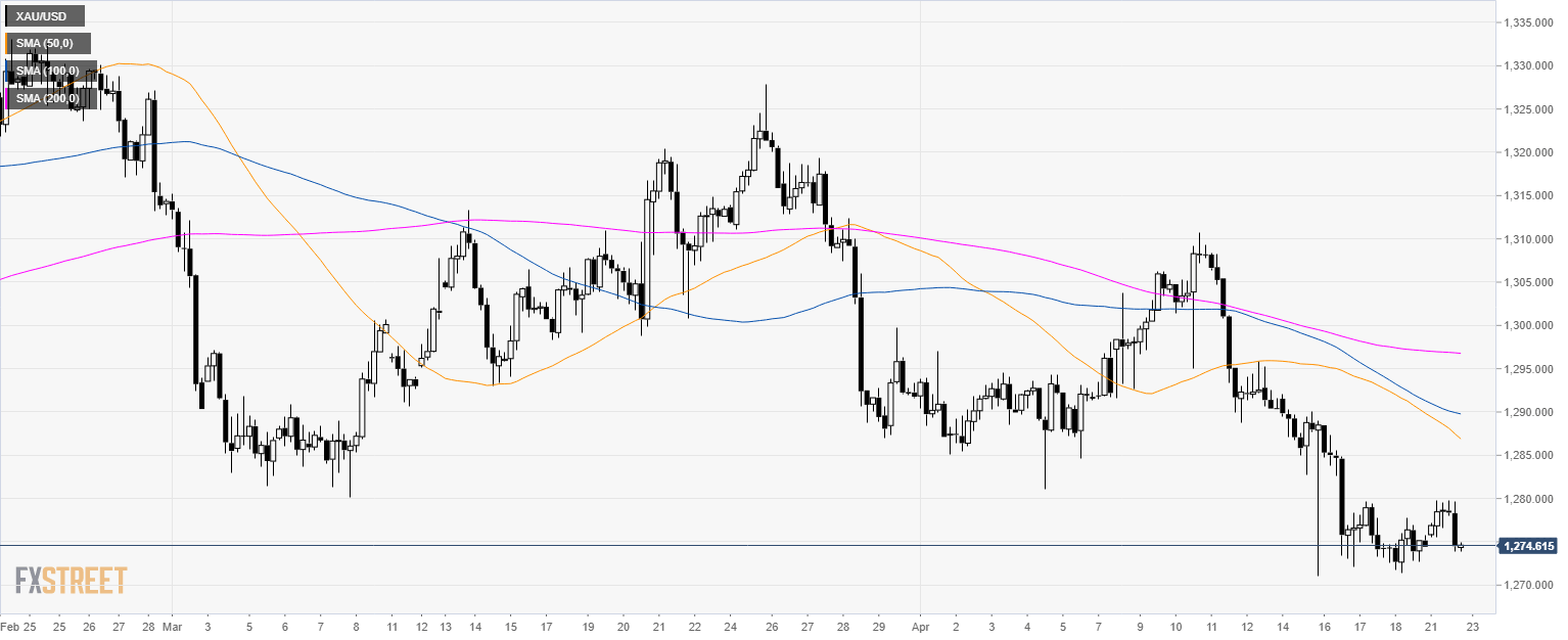 - The Yellow Metal remains capped below 1,280.00 as it is trading below its main SMAs. All-in-all suggesting a bearish bias also in the medium-term.