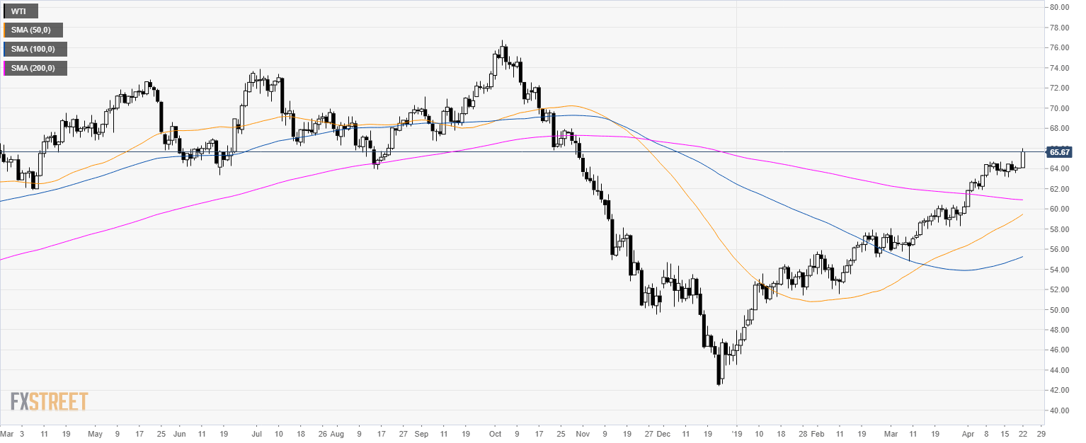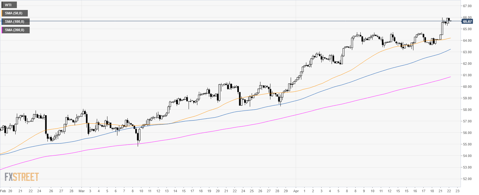 - WTI is trading in a bull trend above its main simple moving averages (SMAs).