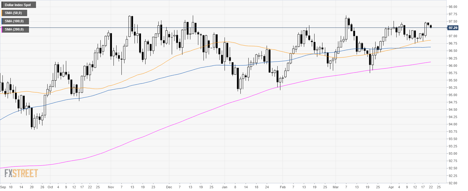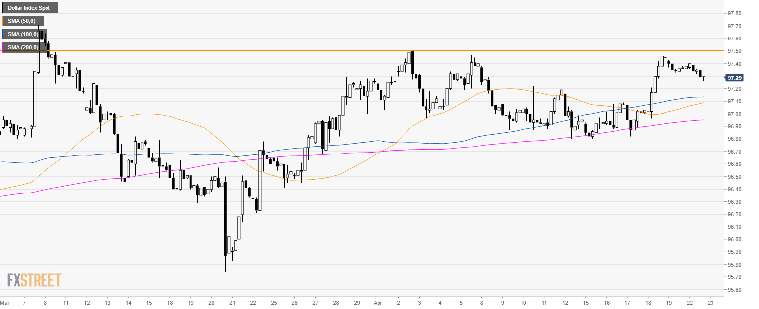 - 97.50 is the highest price in April and that is the level to beat if bulls want to extend the uptrend.
