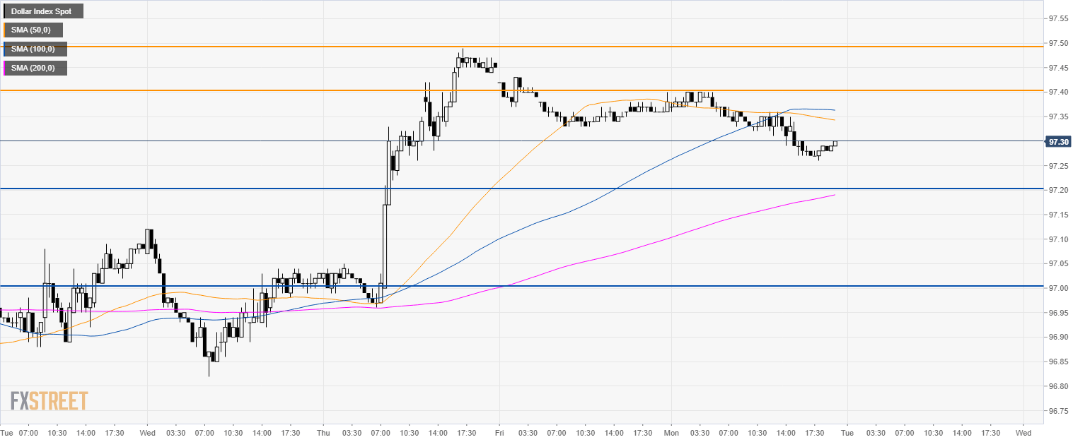 - As the market is trading below its 50 and 100 SMA, DXY is most likely going to revisit 97.20 and 97.00 key support during the week.