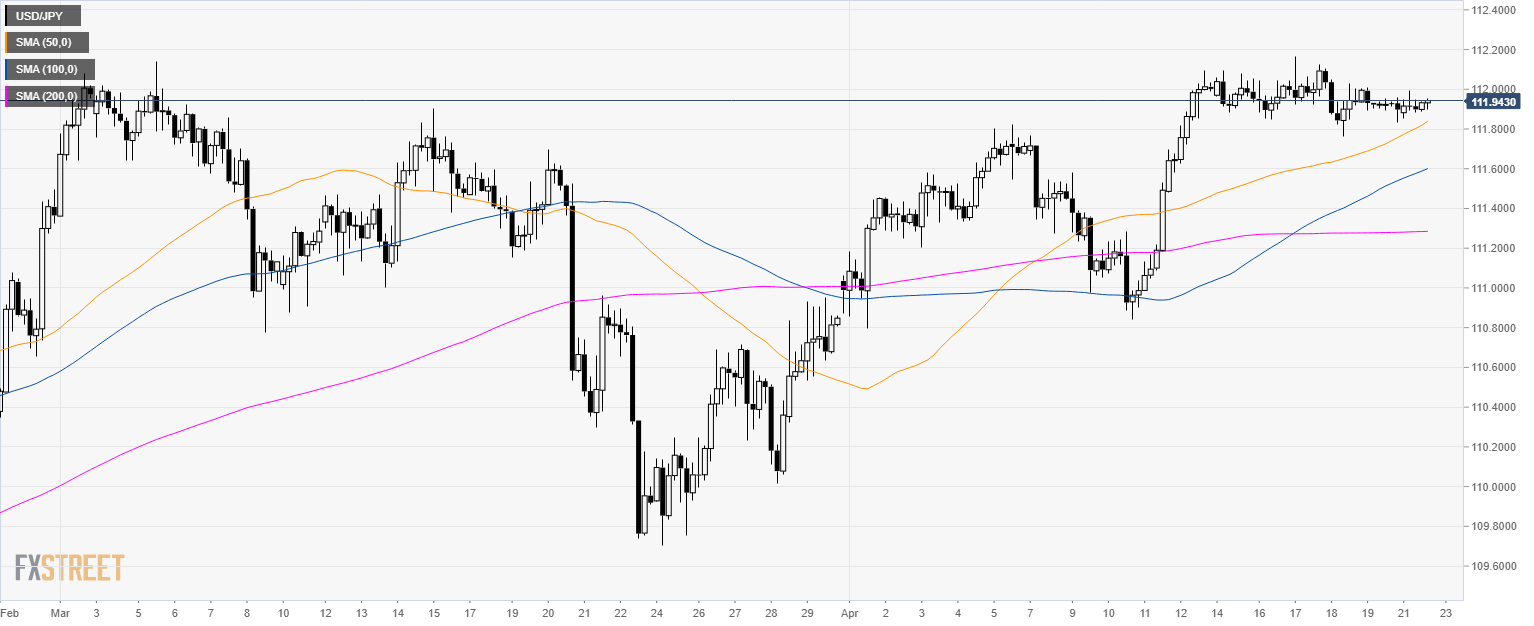 • USD/JPY is stuck near the 112.00 level.