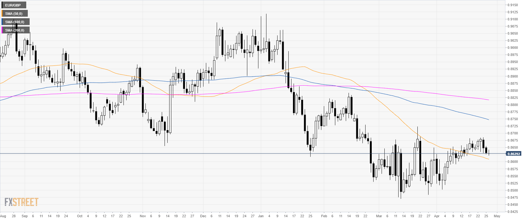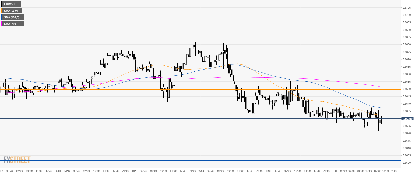 EUR/GBP Technical Analysis: Euro stuck to weekly lows near 0.8630 support