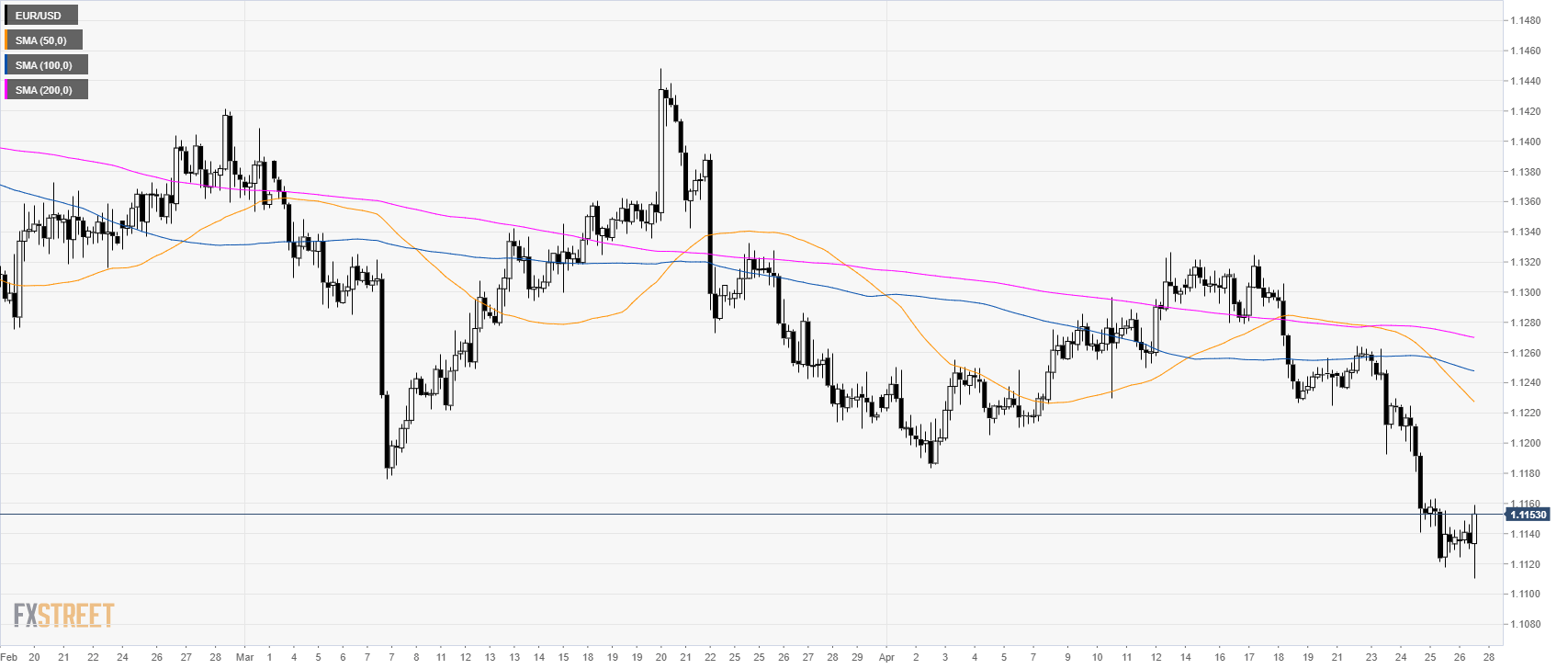 EUR/USD Technical Analysis: Euro corrects towards 1.1160 despite better-than-expected US GDP