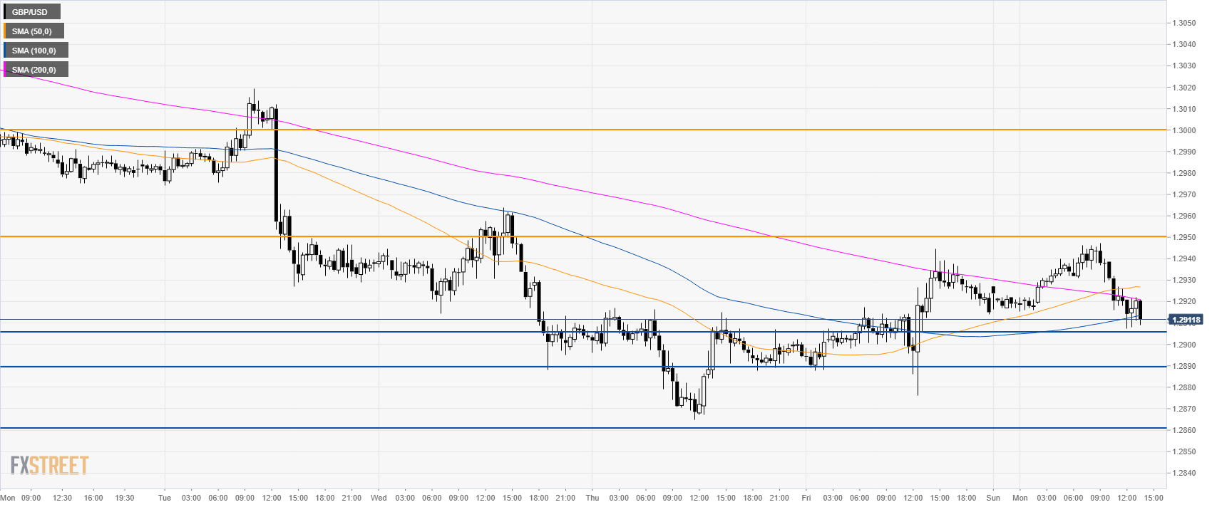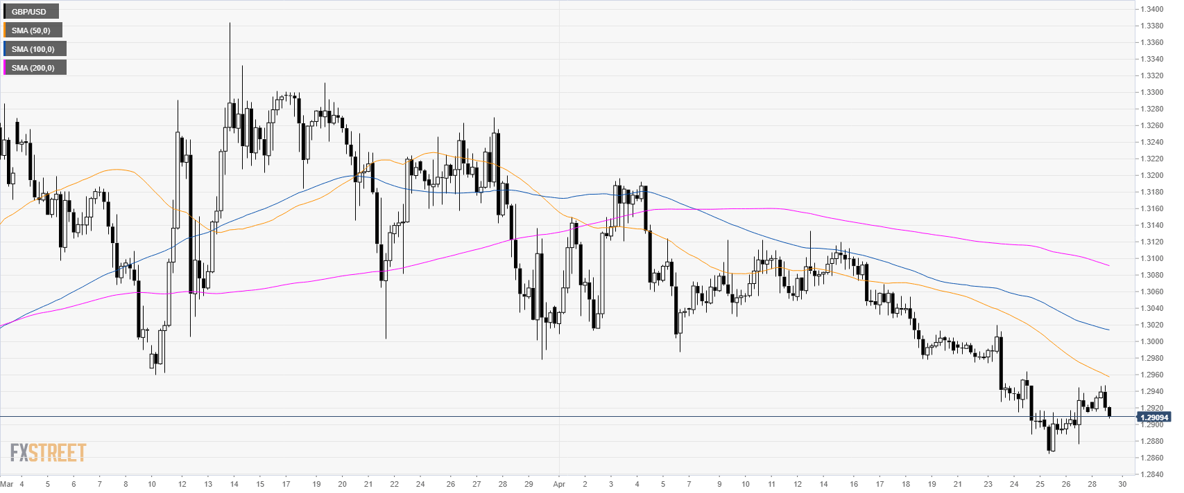- GBP/USD is trading below 1.2950 and its main SMAs suggesting a bearish bias in the short-term.