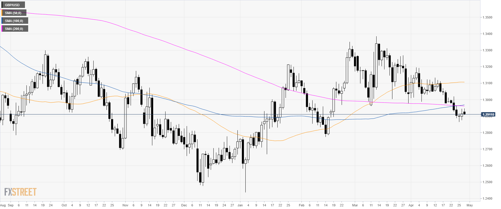 - GBP/USD is trading below its main SMAs at 2.5-month lows.