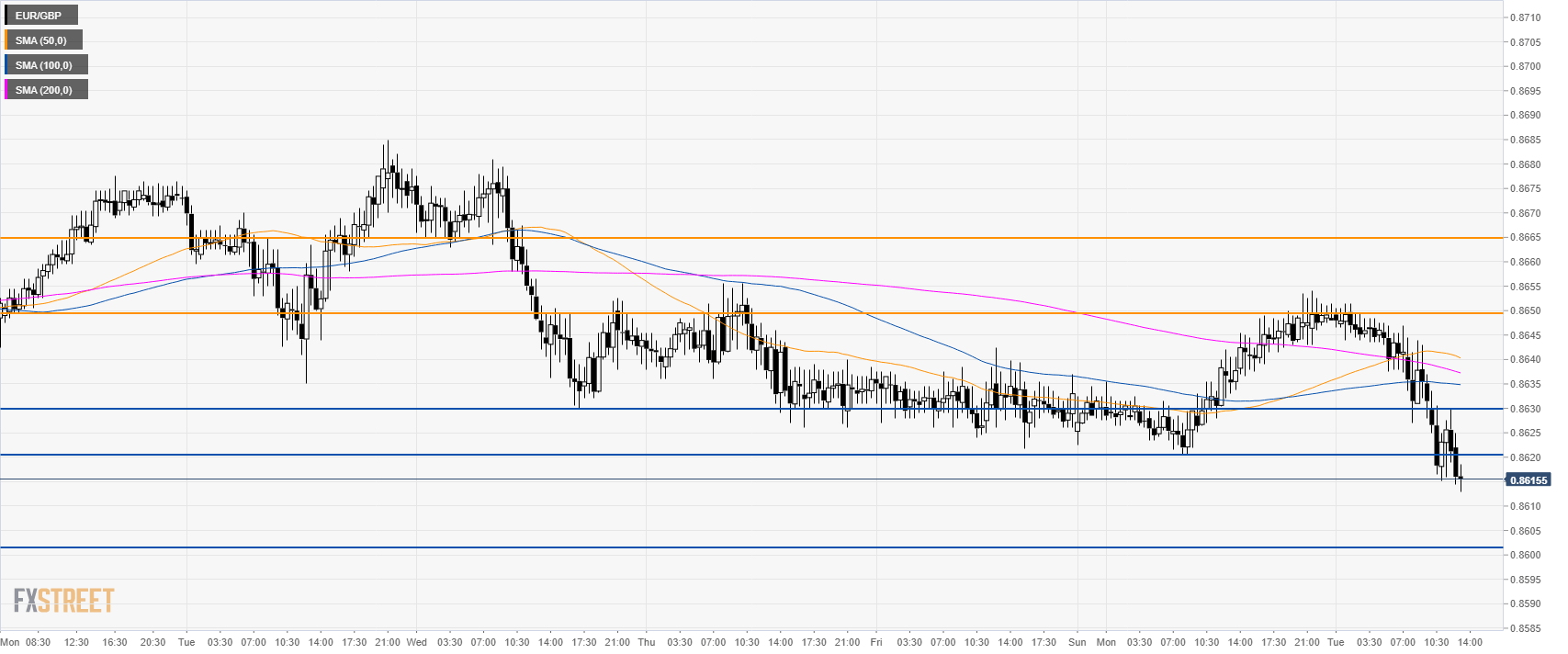 EUR/GBP Technical Analysis: Bears break 0.8620 support en route to 0.8600 figure