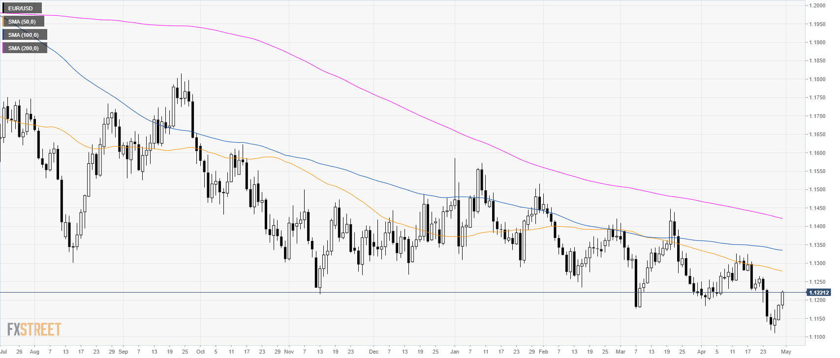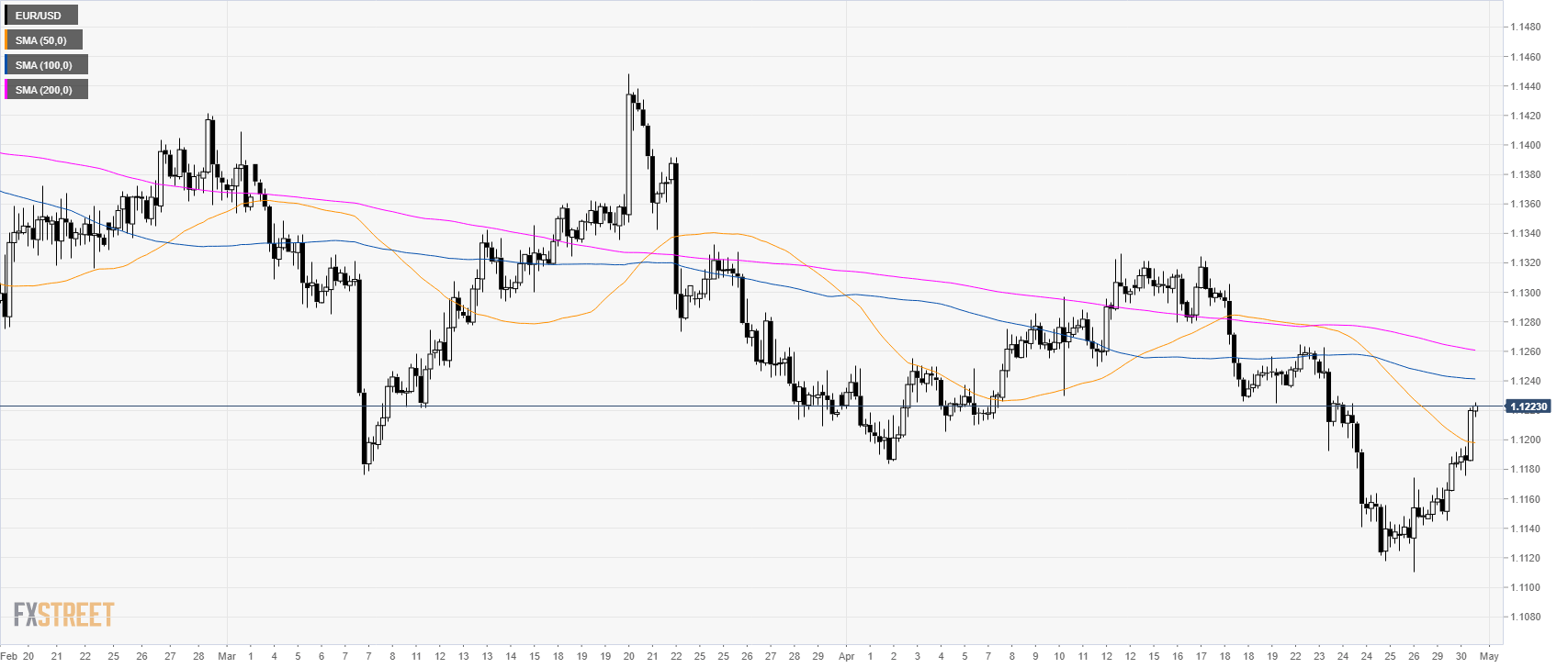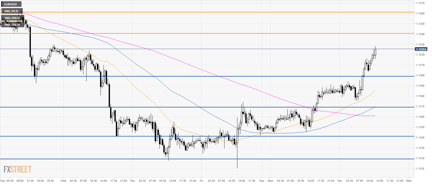 - EUR/USD is trading above the 1.1200 figure and its main SMAs suggesting a bullish bias.