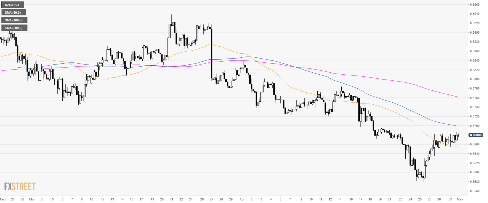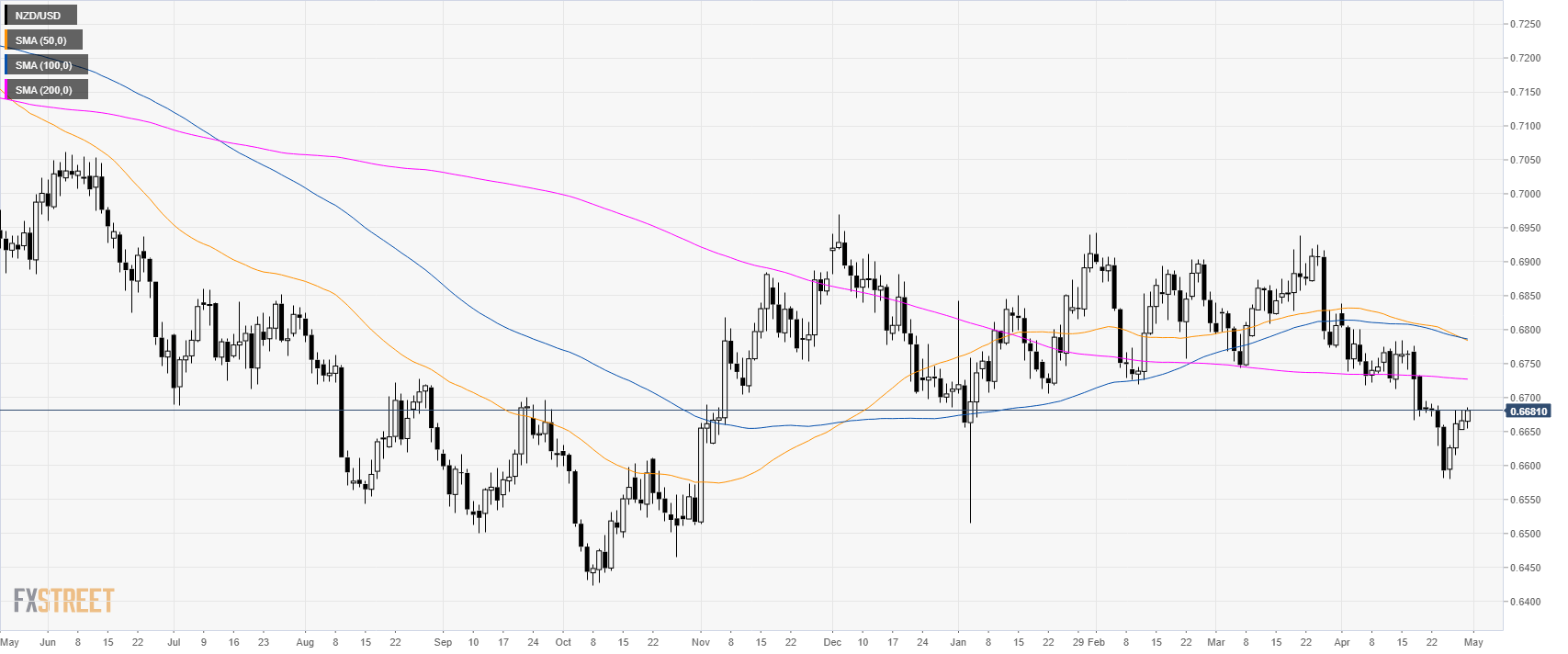 • NZD/USD is trading in a bear leg below its 200-day simple moving average (SMA).