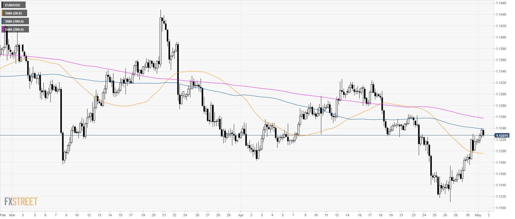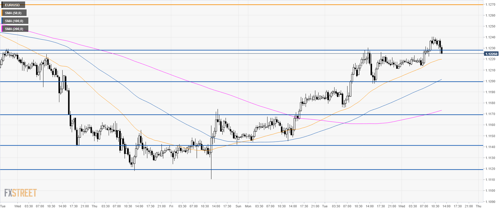 - EUR/USD is retreating slightly below 1.1230 as it trades above its main SMAs suggesting bullish momentum in the short-term.