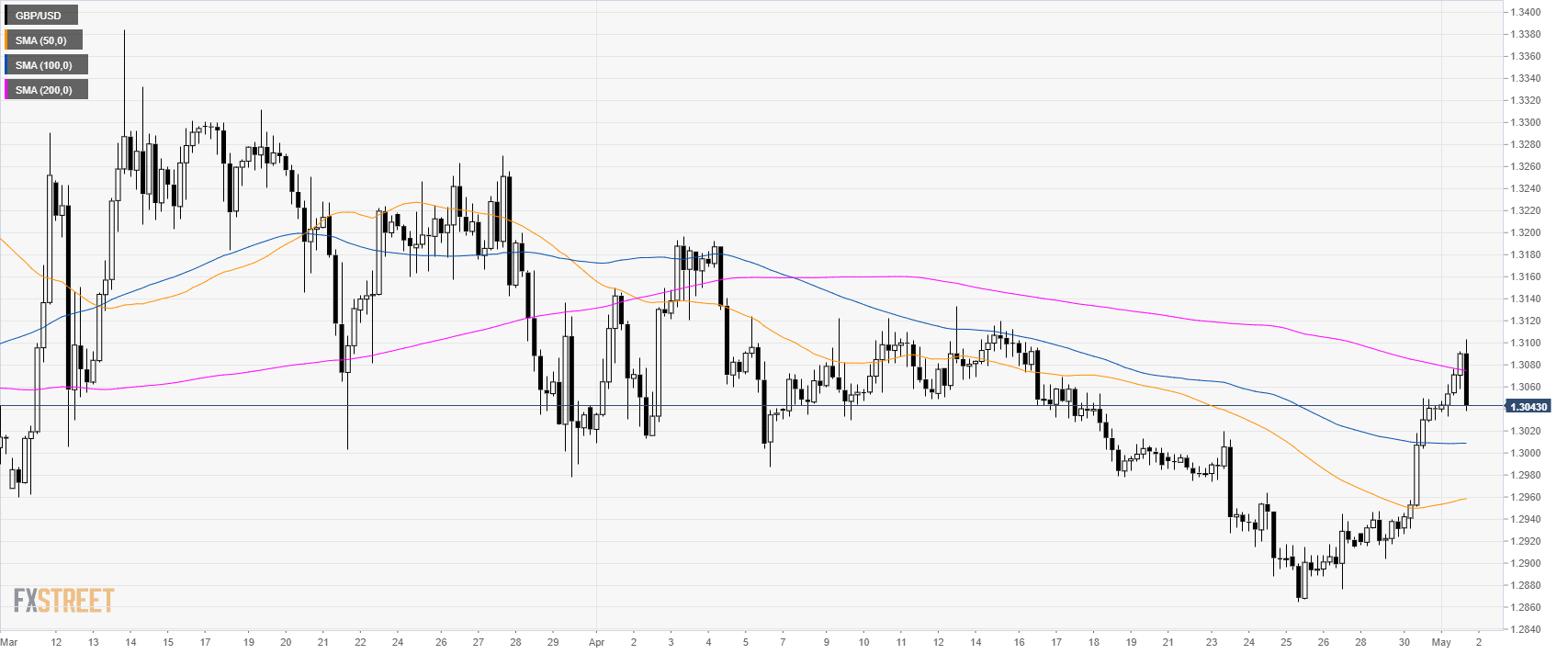 - GBP/USD rejected the 1.3100 figure and the 200 SMA.
