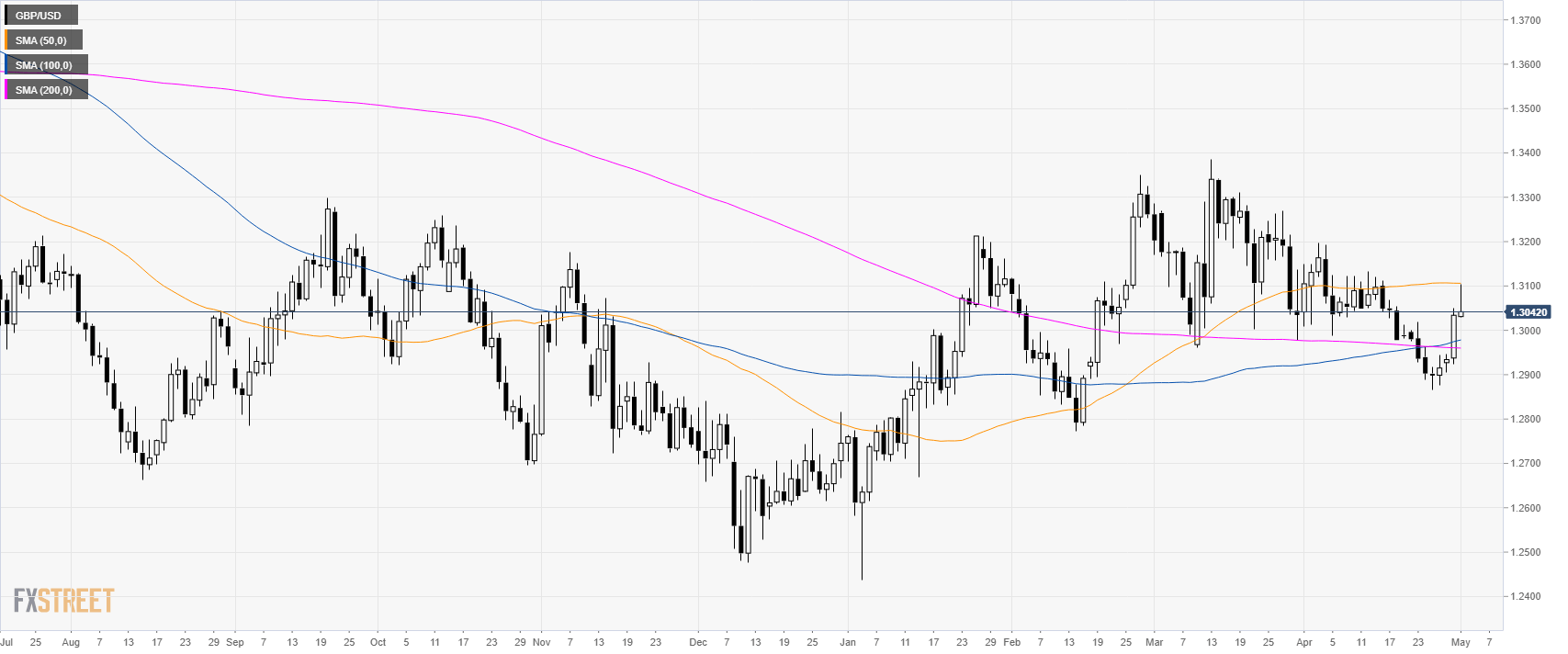 - GBP/USD is trading above 1.3000 figure and its 100 and 200 SMAs.