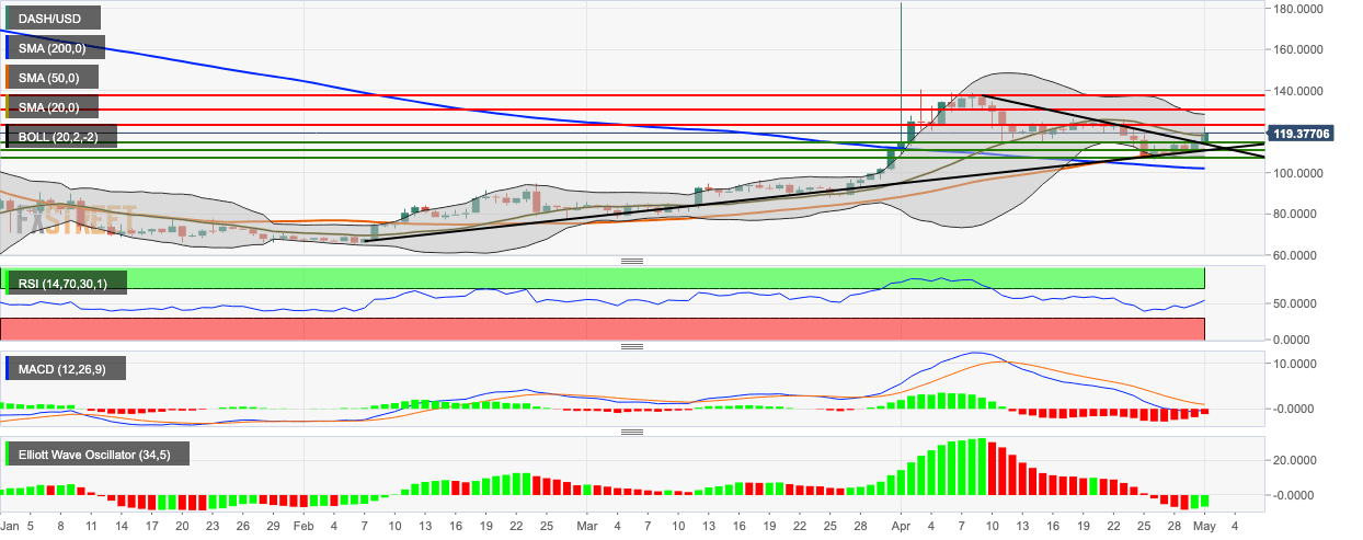 • DASH/USD went up from $114.50 to $119.38 this Wednesday.