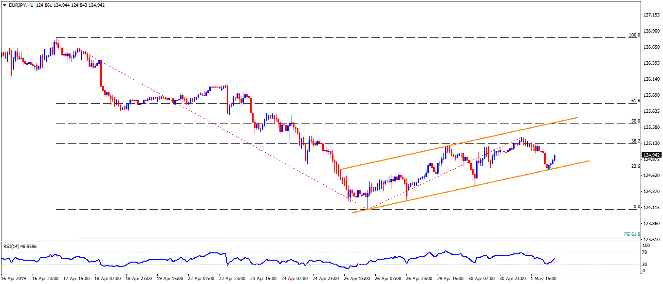 EUR/JPY again took a U-turn from almost one week long ascending trend-channel as it trades near 124.90 during early Thursday.