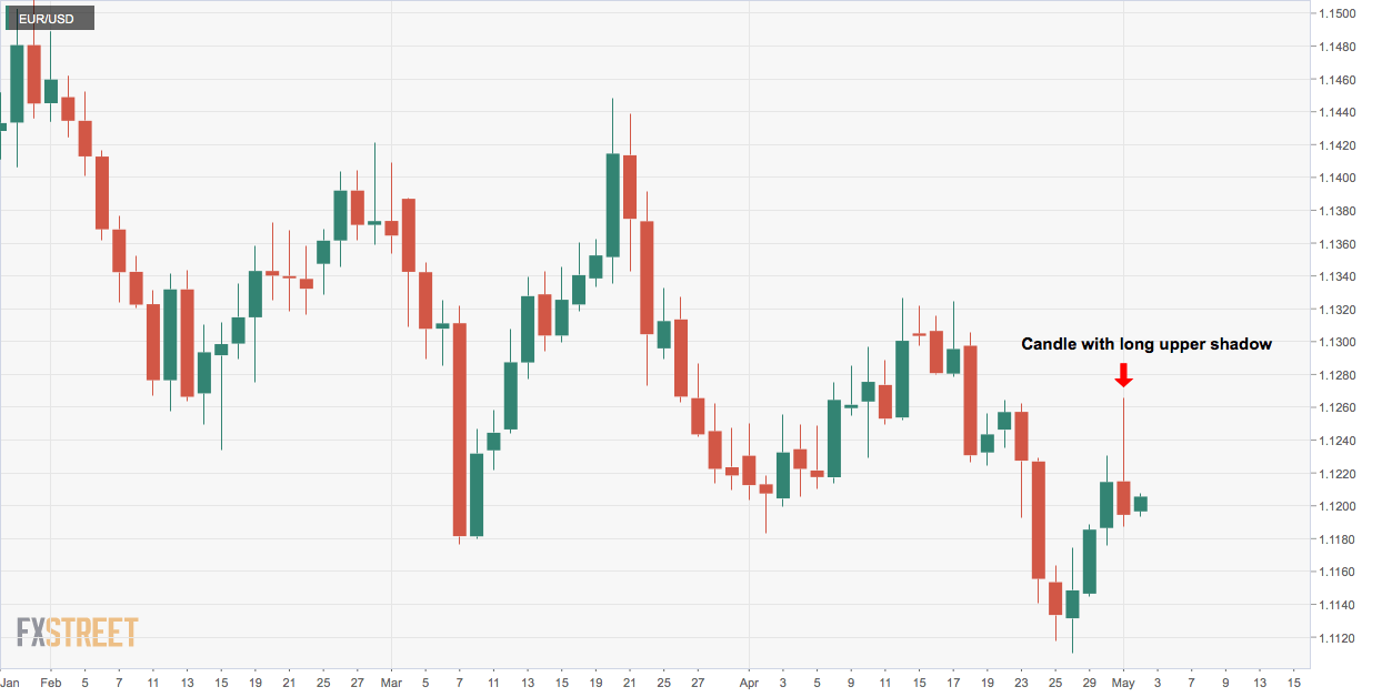 - EUR/USD charted a candle with long upper shadow on Wednesday.