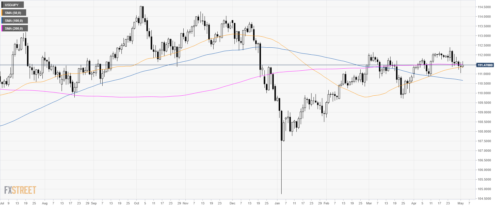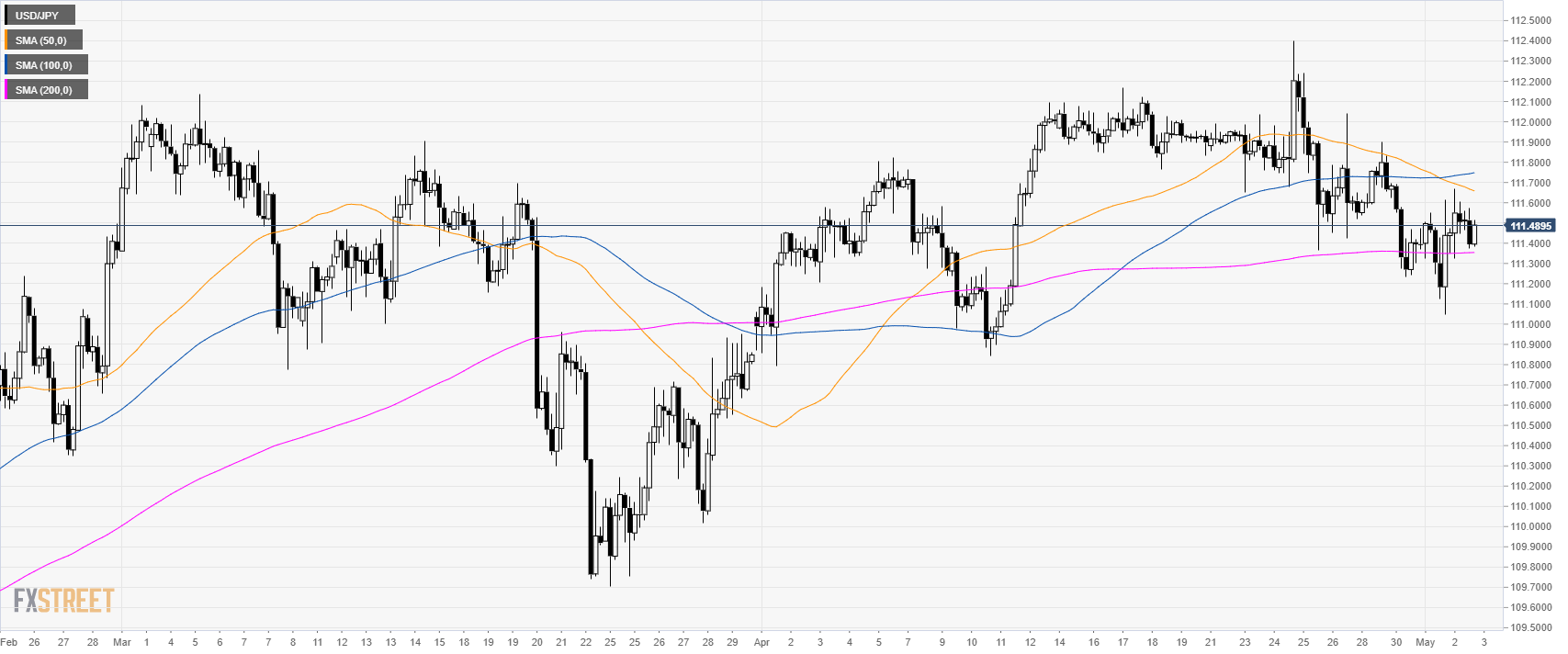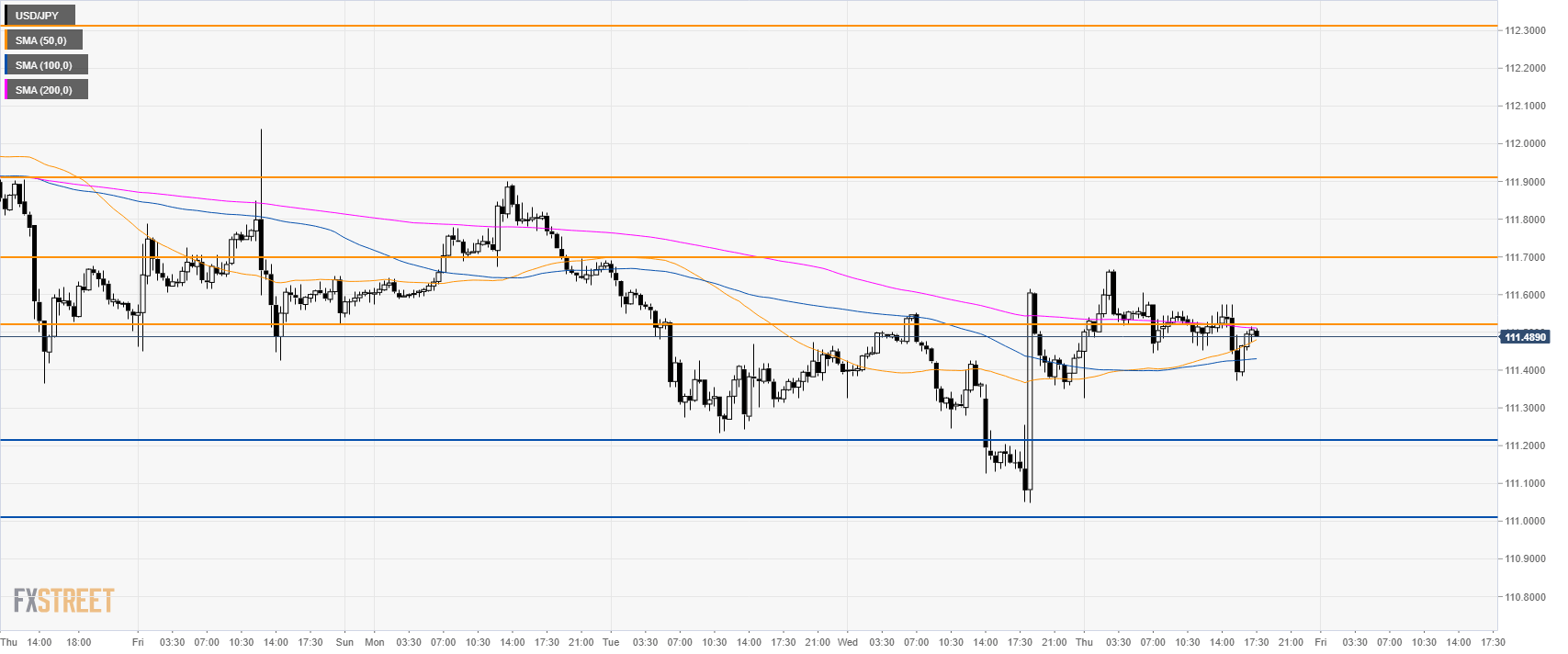 - USD/JPY is trading above its 50 and 100 SMA while the market is challenging 111.50 and the 200 SMA.