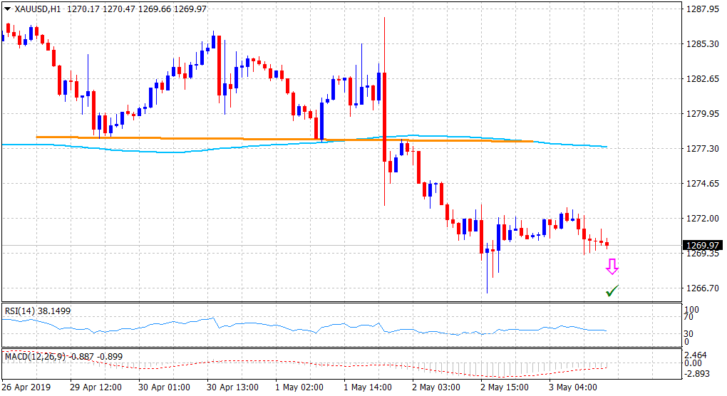 “¢ Given the recent breakthrough an important $1278 horizontal support – coinciding with 200-hour SMA, the price action clearly suggests that the near-term bearish pressure might still be far from over.