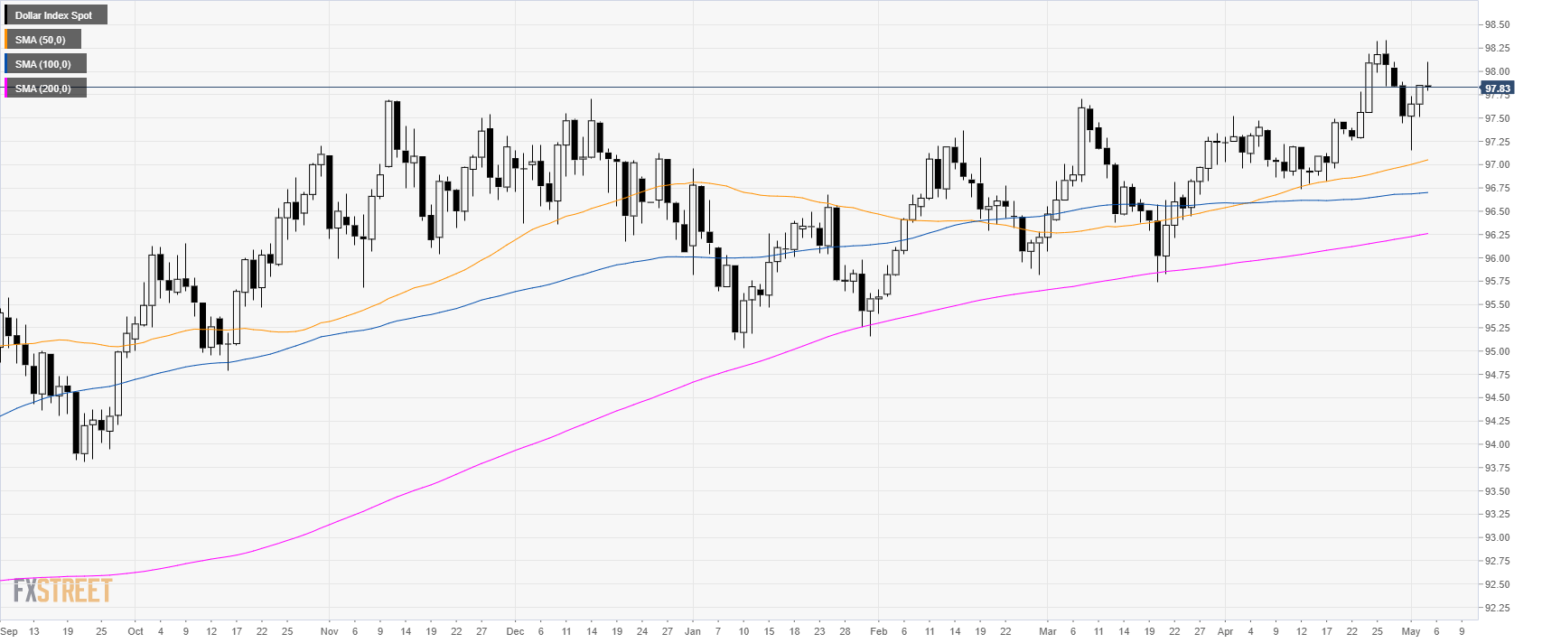 - The US Dollar Index (DXY) is trading in a bull trend above its main simple moving averages (SMAs).